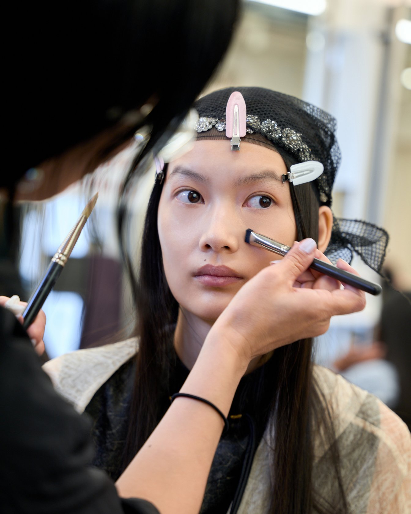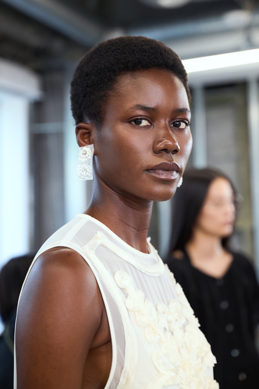 テーマは「スーパーナチュラルなマネキンスキン」です。ファッション、メイク、ヘアのいずれにおいても、今はとにかく“リアル”なものがトレンド。デザイナーの青木(明子)さんからも、“リアルさ”というリクエストがありました。ただリアルであるだけでなく、そこからどのように表現していくかが大切です。今回は、スーパーナチュラルとマネキンという言葉を組み合わせています。
