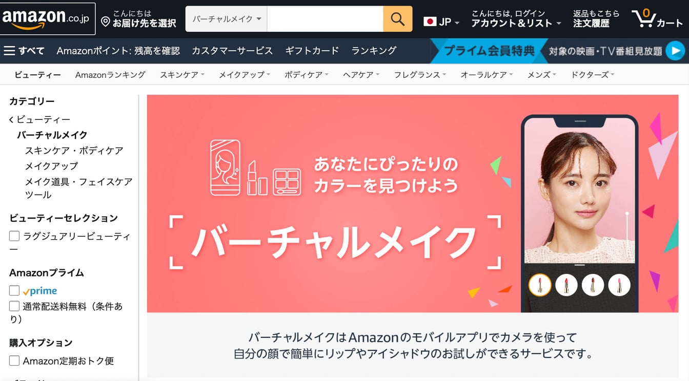 アマゾンのバーチャルメイクページより