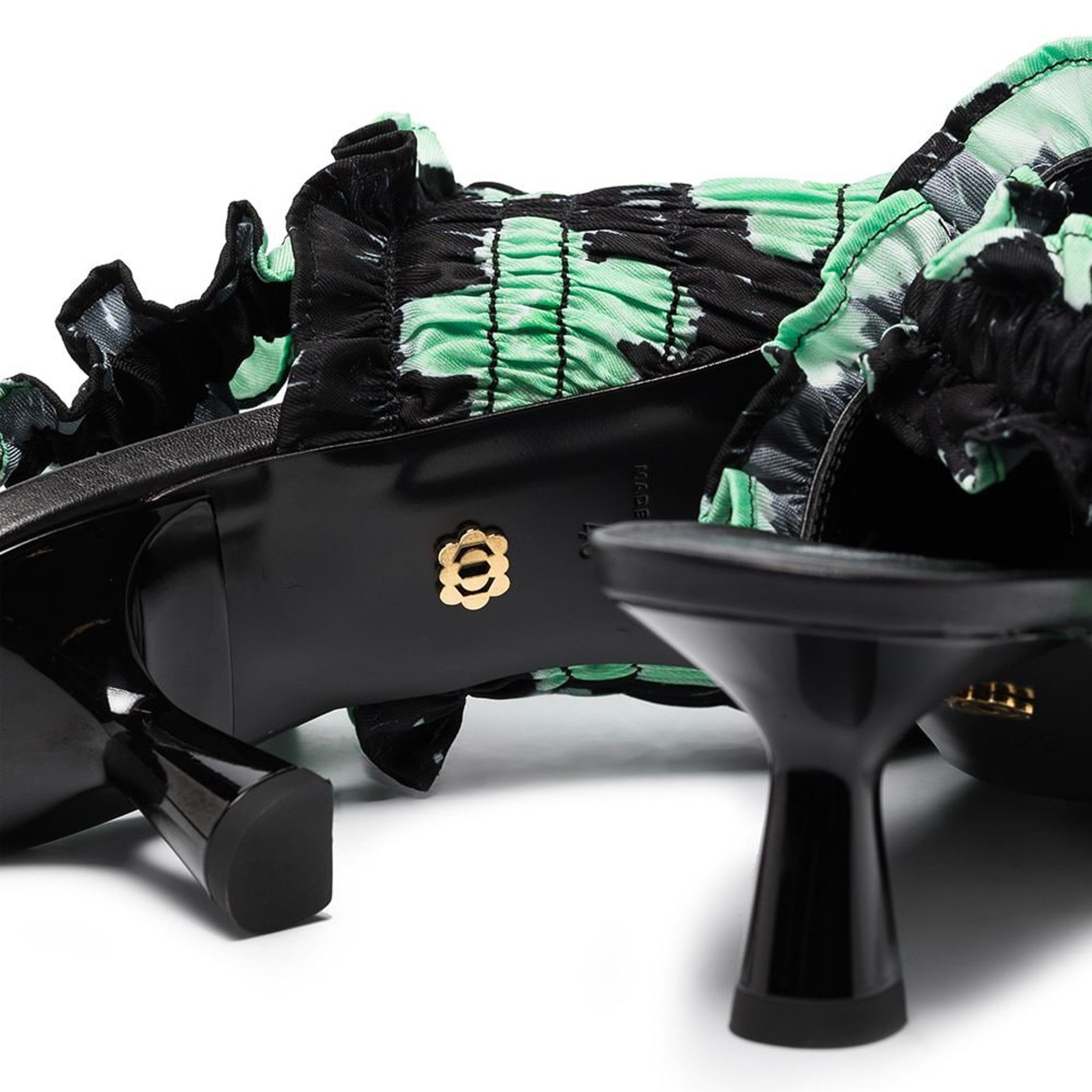 パーソンズ美術大学を卒業後、2018年に自身の名を冠してアメリカ ニューヨークで「エイミー?クルックス(Amy Crookes)」をスタート。印象派の絵画を彷彿とさせる、繊細かつ夢幻的なオリジナルパターンをプリントしたファブリックにシャーリングを施し、ソックスのような優しく足を包み込むフィット感が心地よい、快適な履き心地が特徴。シューズは全て5cmのローヒールとなっているので、疲れにくいのも嬉しいポイントです。ブランド発足時はシューズがメインでしたが、現在はアッパーと同じファブリックを使用したウェアも展開中。