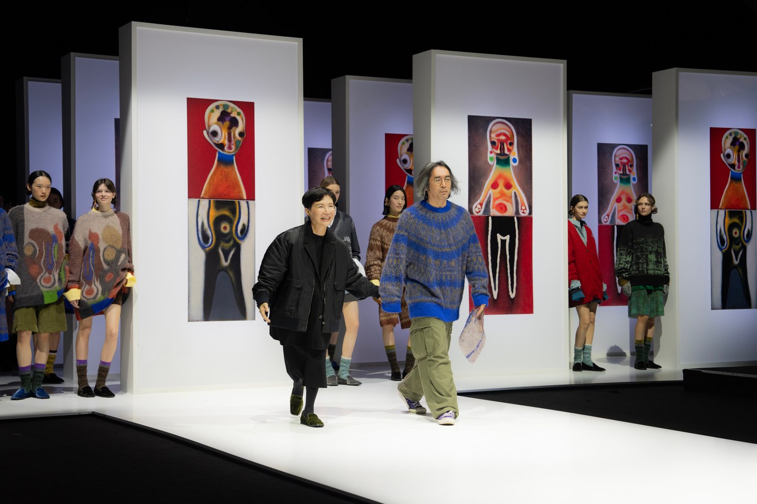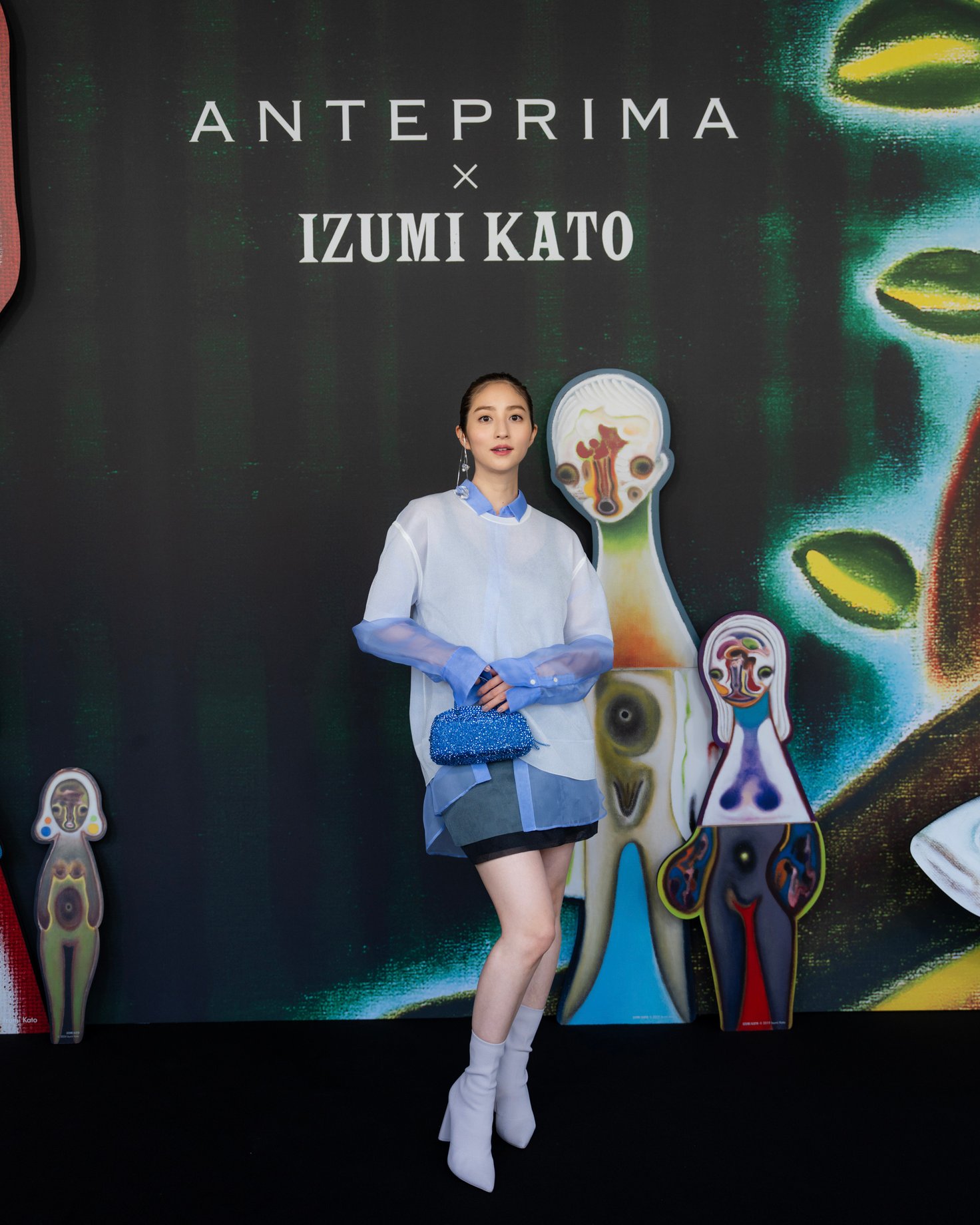 堀田さんは、2月27日にミラノで開催されたアンテプリマの2025年秋冬コレクションのランウェイショーに出席。会場に到着すると、今季のコラボレーションアーティストである現代美術家の加藤泉による作品を用いたパネルが展示されており、ショーが始まる前からコレクションのムードを楽しむことができました。