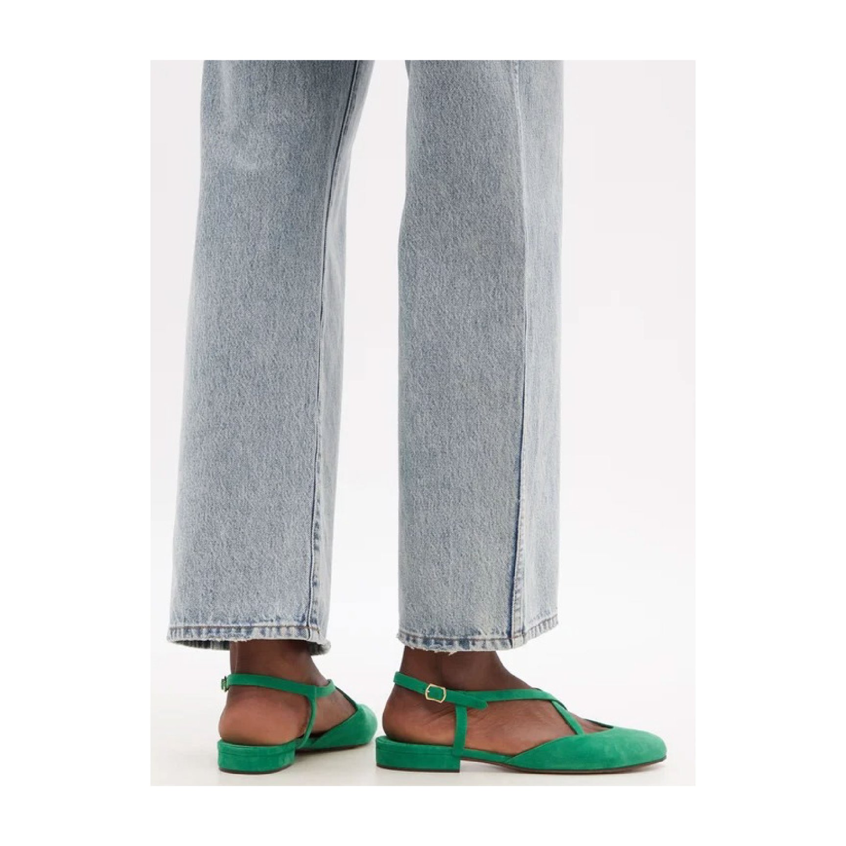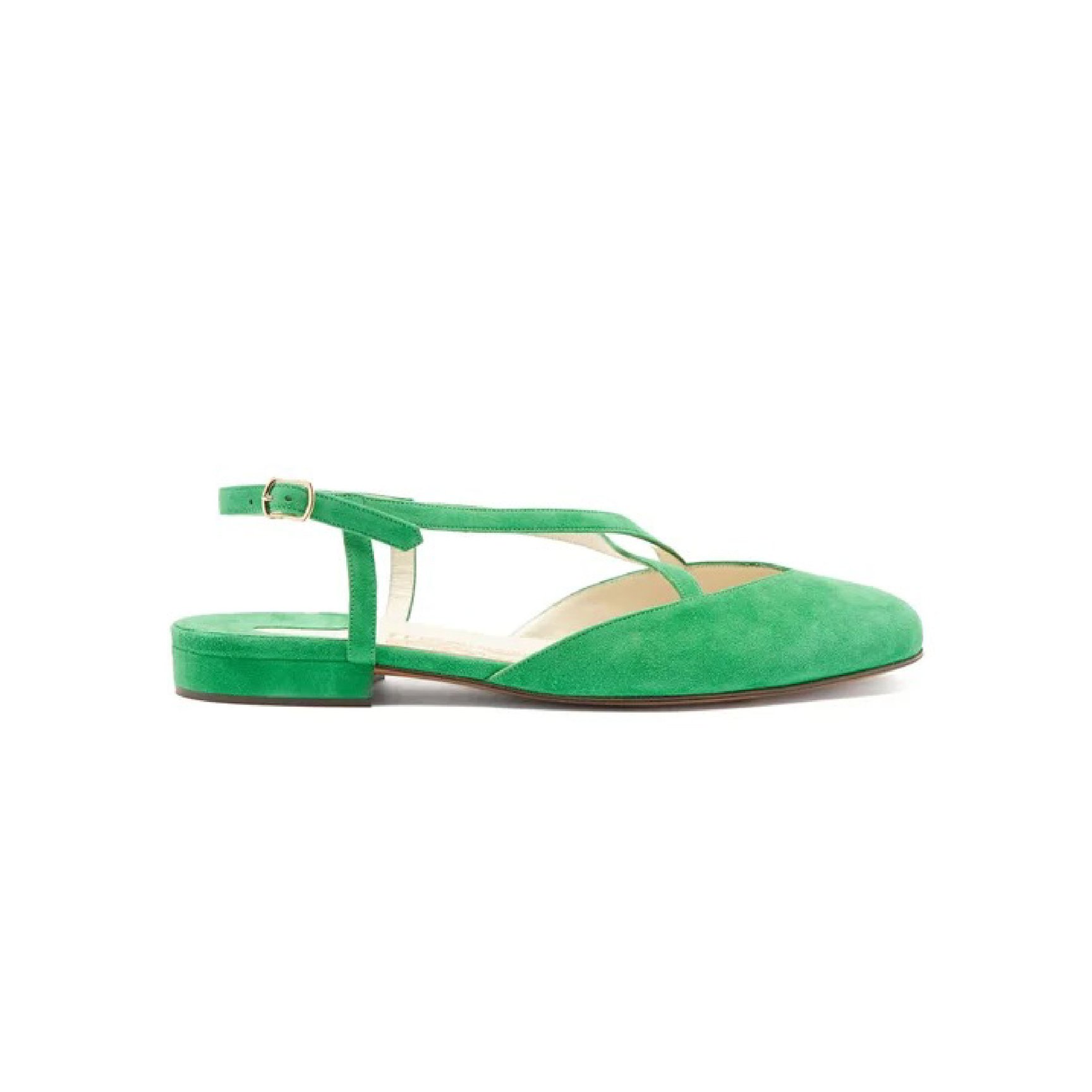 フレッシュなグリーンが目に鮮やかな「サルヴァトーレ フェラガモ(Salvatore Ferragamo)」の一足は、甲で交差する細身のスリングバックストラップと肌馴染みの良いスエード素材で歩きやすさ抜群。