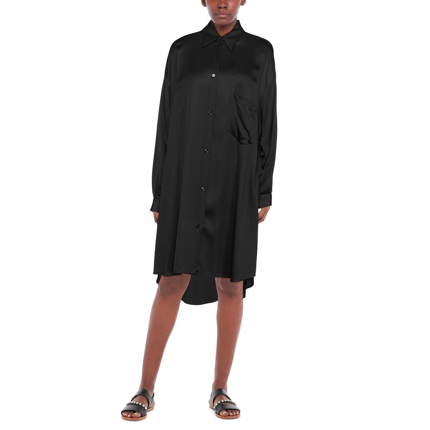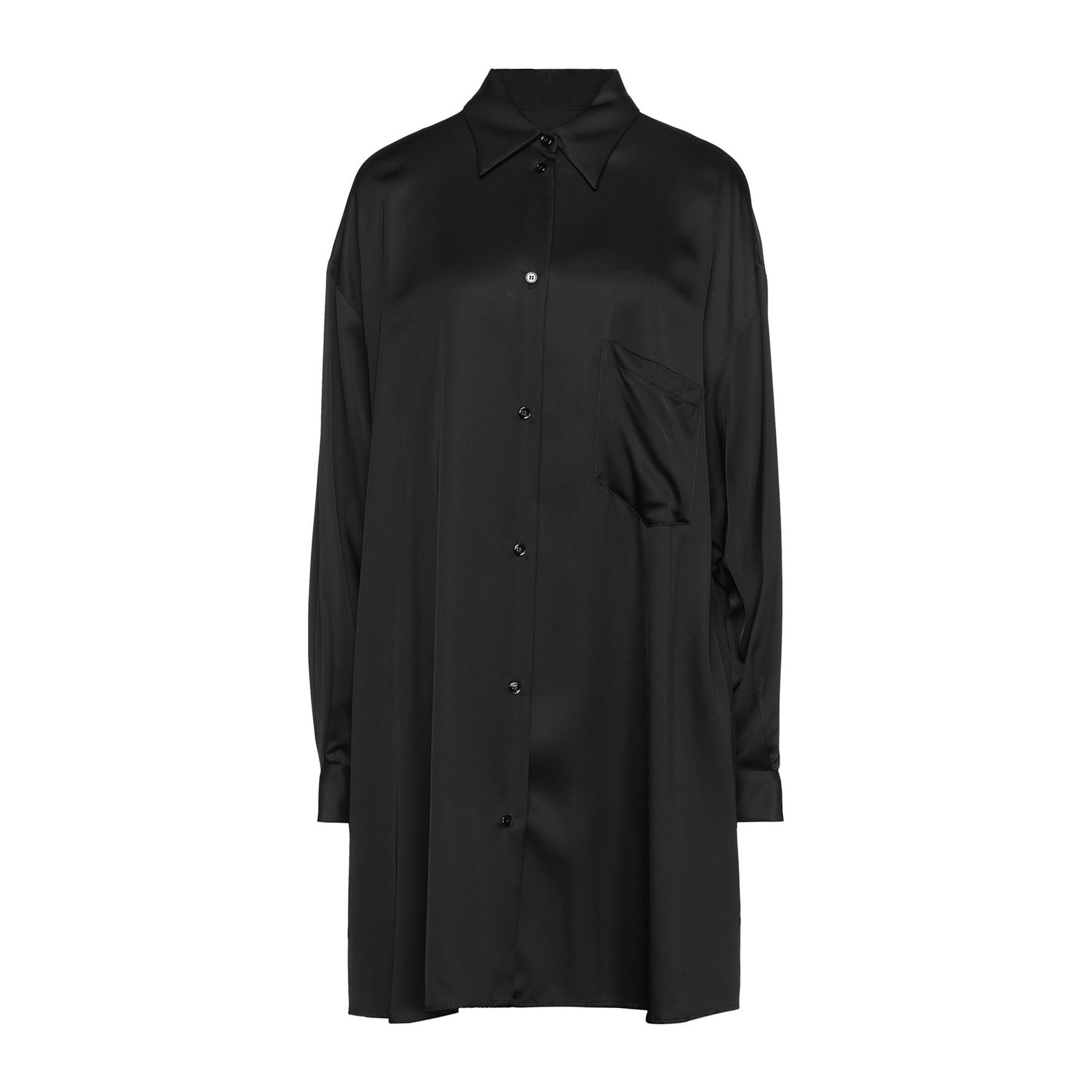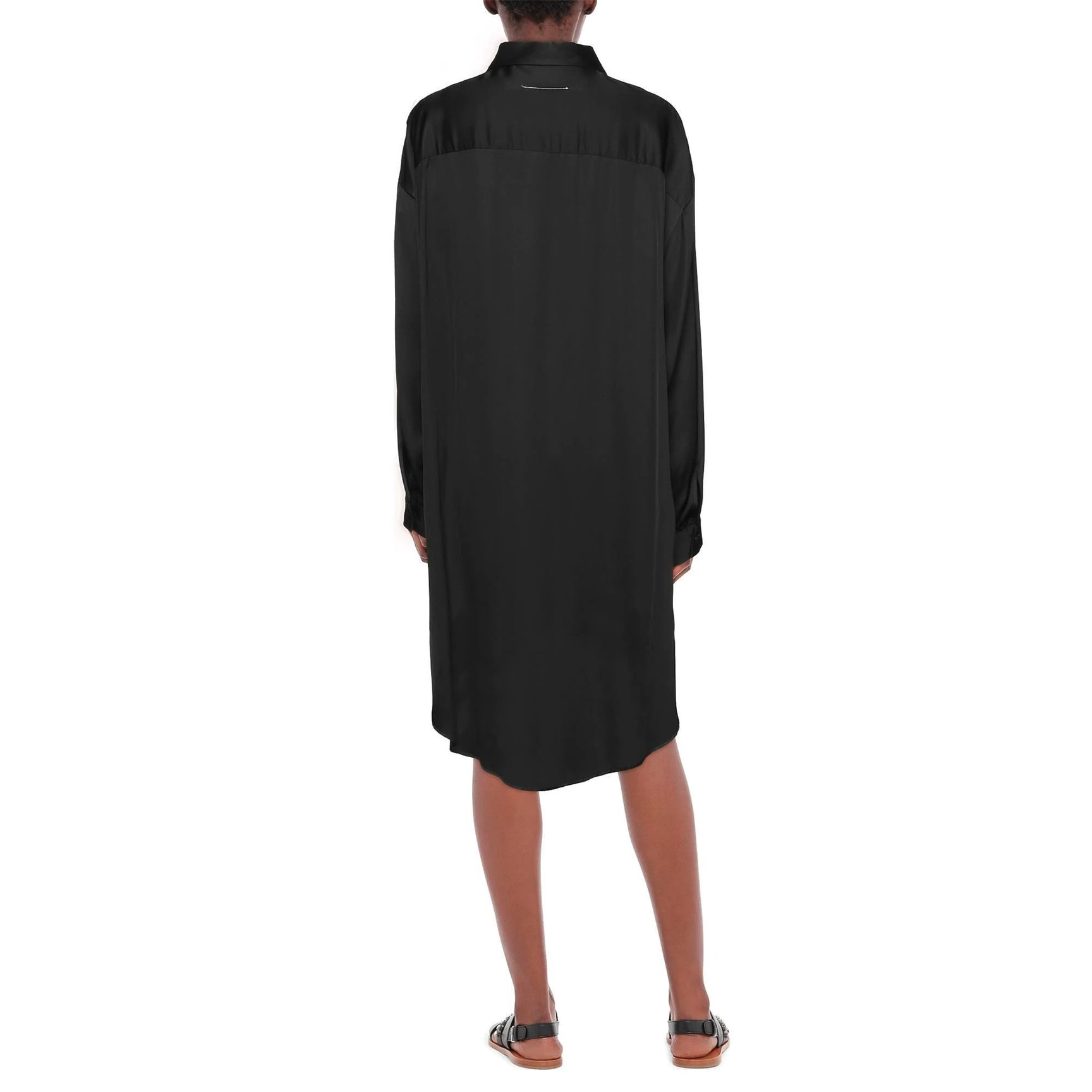 「エムエム6 メゾン マルジェラ(MM6 Maison Margiela)」からもう一着、ウエストベルトやレイヤードなどで様々な着こなしが叶う、ブラックシャツワンピースをチョイス。美しいドレープを描く艶やかなサテン素材に、ブランドの存在感を示すラインステッチが覗きます。