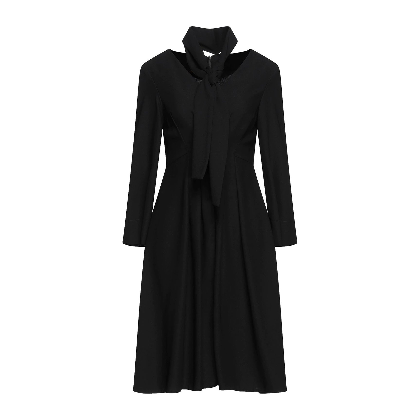 自分らしさを楽しめるリボンタイがパッチされた、「クリスティーナ ロッカ(CRISTINA ROCCA)」のプレーンなひざ丈プリーツドレス。ロマンティックにリボンをつくっても、ネクタイのように凛と決めても、結び方のアレンジ次第でオリジナリティ溢れる着こなしを満喫できます。