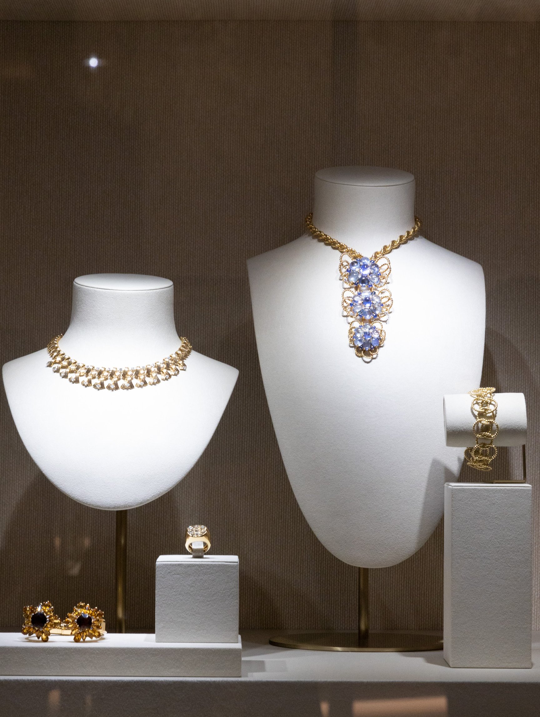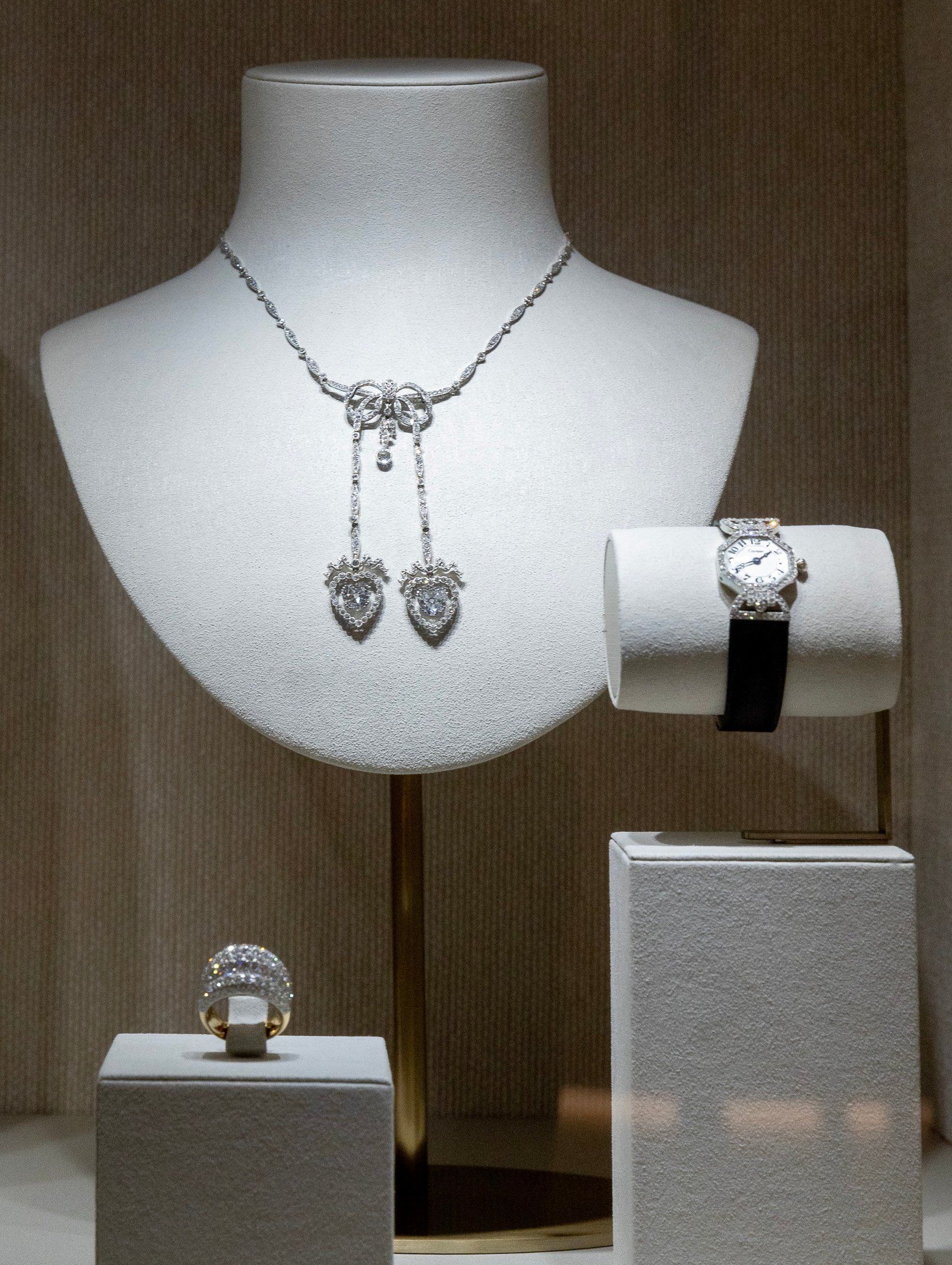 会場には新作や既存のクリエイションのほか、1900年代から1960年代までのアンティークピース約20点も、今回のイベントのために特別に展示されている。1905年や1910年に制作されたプレシャスなダイヤモンドネックレスをはじめ、バゲットカットが美しいダイヤモンドミニウォッチやコレクターに人気のある「タンク サントレ」、そしてブローチやペーパーナイフといった、希少性の高いデザインが並ぶ。