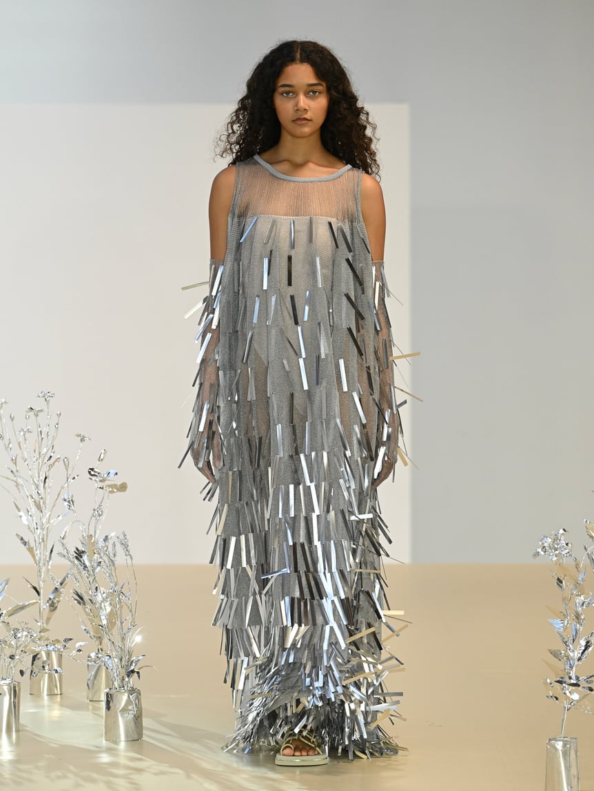 高橋悠介が手掛ける「CFCL」が9月26日、2024春夏シーズンにあたるVOL.7コレクションをパリで発表した。ショー形式のプレゼンテーションで、会場はパレ?ド?トーキョー。天窓から自然光が入る気持ちのよい空間へ足を踏み入れると、ベルリン在住のアーティスト三家俊彦によるアルミニウムの植物のアート作品が煌めく。