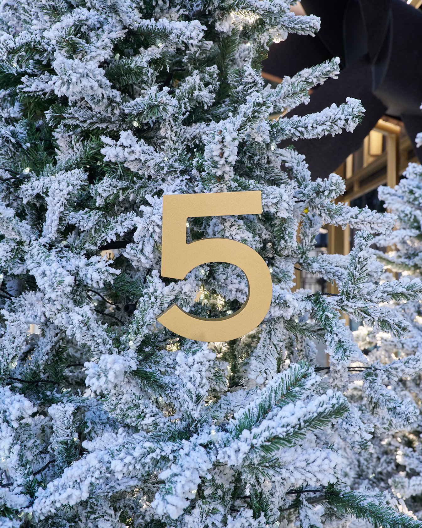 物語のフィナーレにふさわしいきらびやかなゴールドのモニュメントがお出迎え。大きなシャネル N°5のボトルとともに記念撮影。QRコードを読み取ると、雪の結晶が降り注ぐ魔法の世界を堪能。思い出を記録にも記憶にも残してみて。