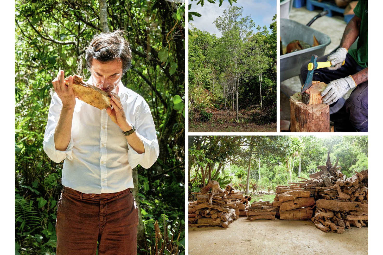 たとえば画家が絵の具を選ぶように、調香師も香りのパレットを慎重に選びます。その品質は植物自体の品質、育った土地(テロワール)、そして抽出方法に大きく左右されます。ブルー ドゥ シャネルでは、ニューカレドニアに自生する特別なサンダルウッドを用いています。これには冷却抽出という独自の技術を用い、非常にユニークな香りを引き出しています。