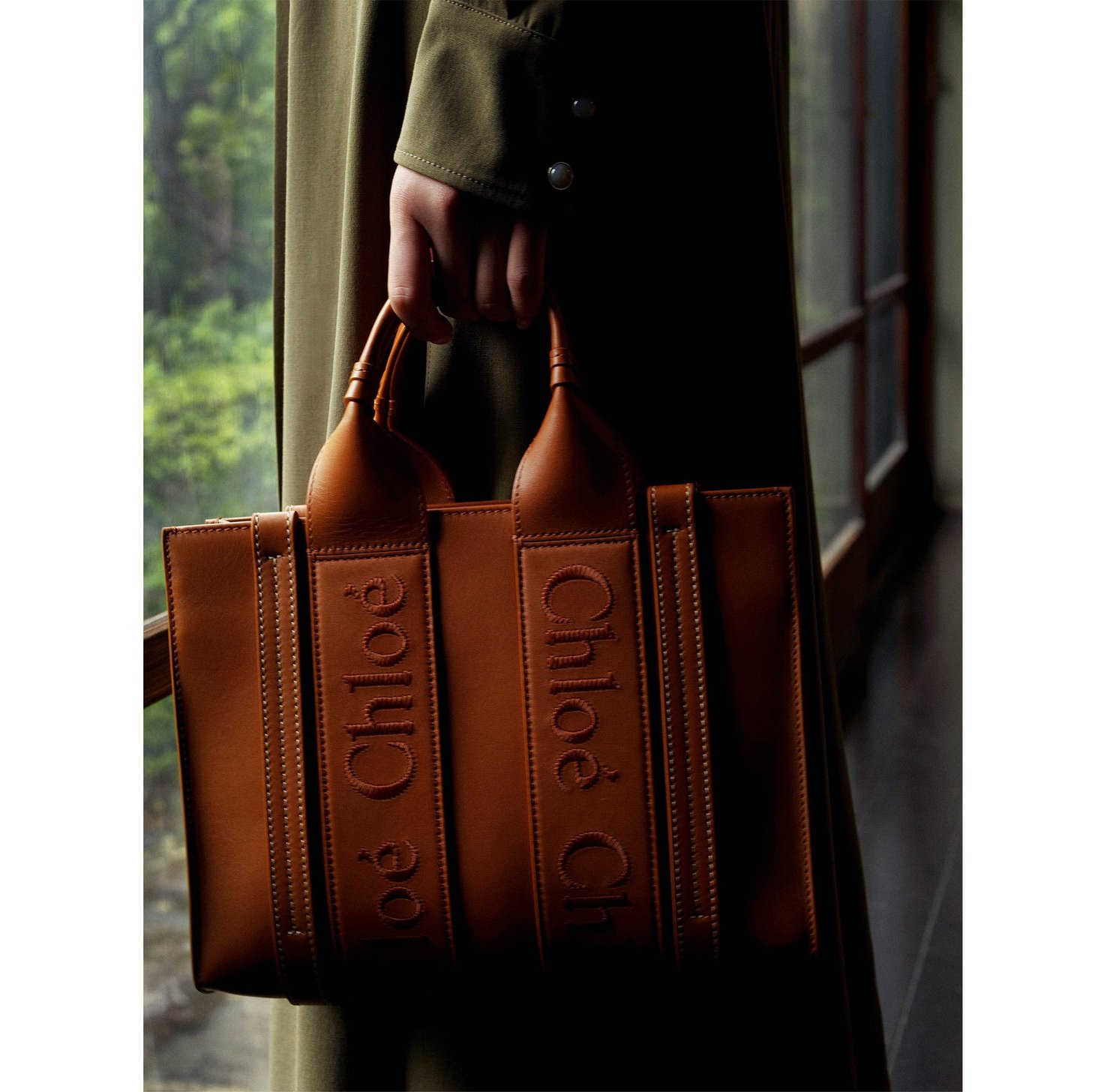 “Woody” スモールトートバッグ H20 x W26.5 x D8 cm(Caramel)22万3300円、ドレス 32万100円(参考価格)