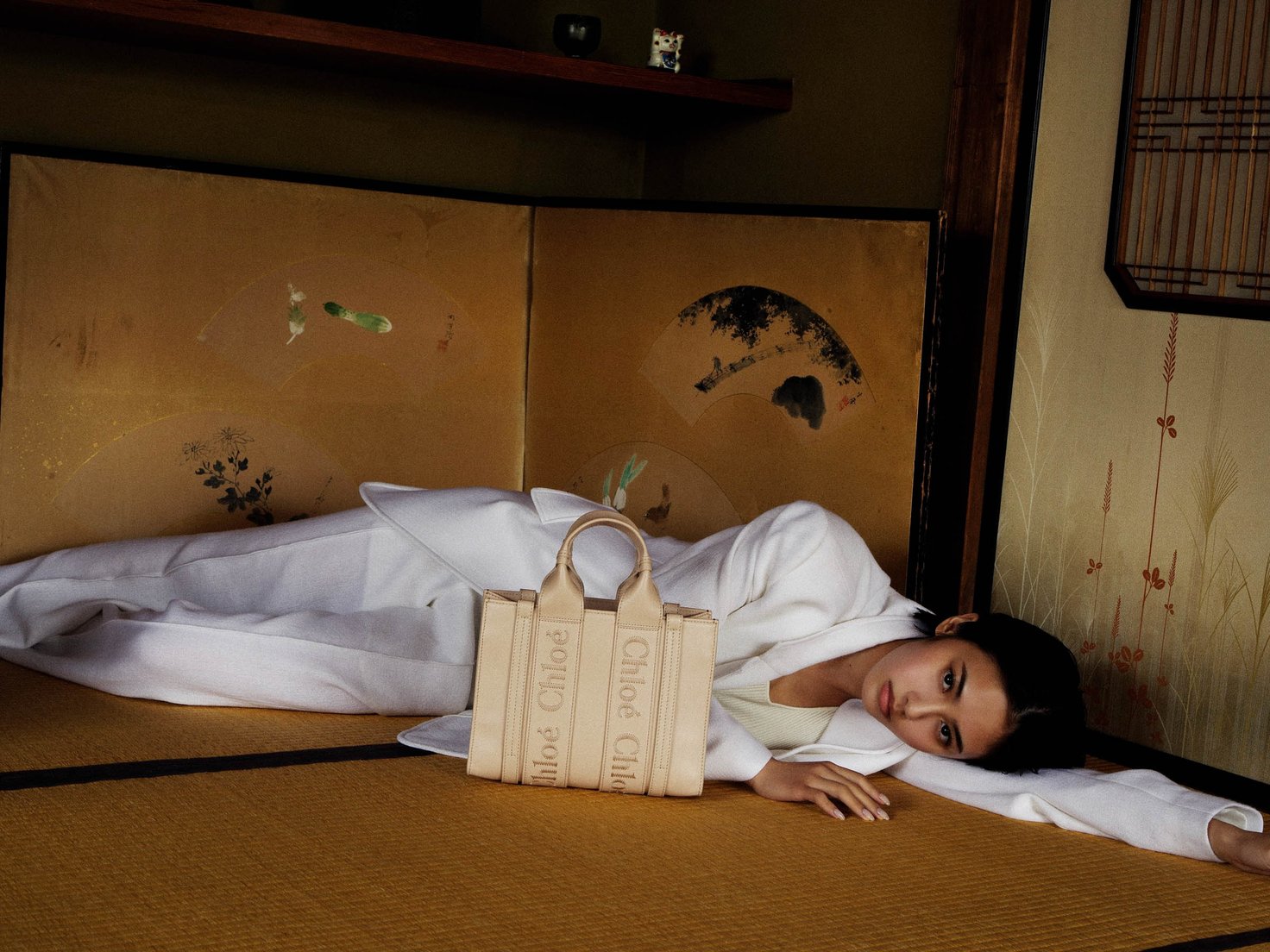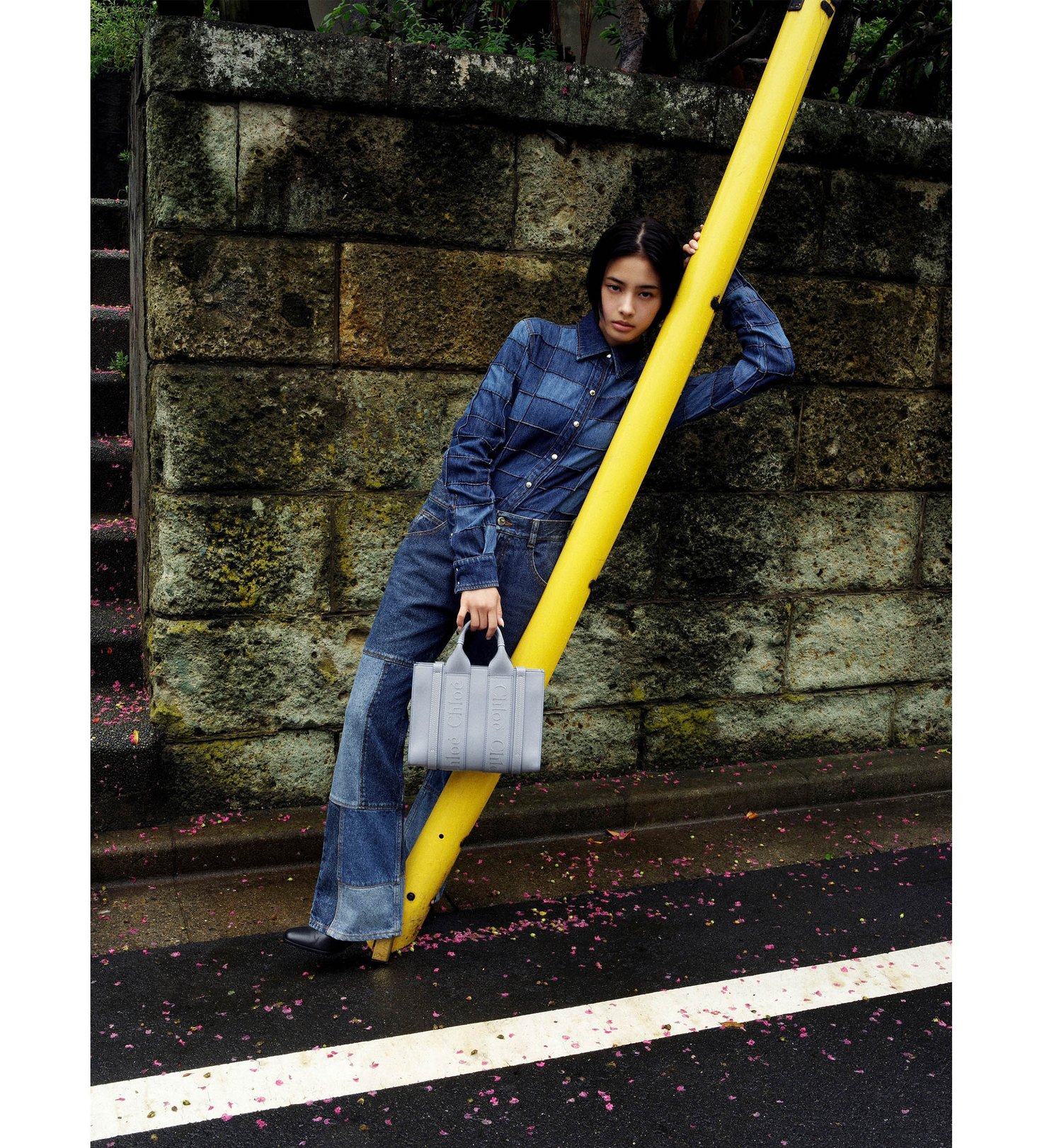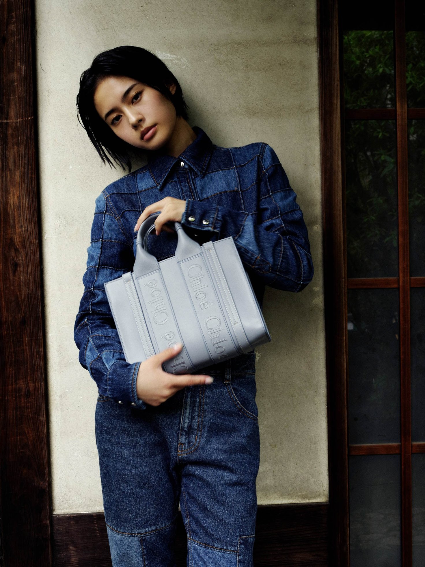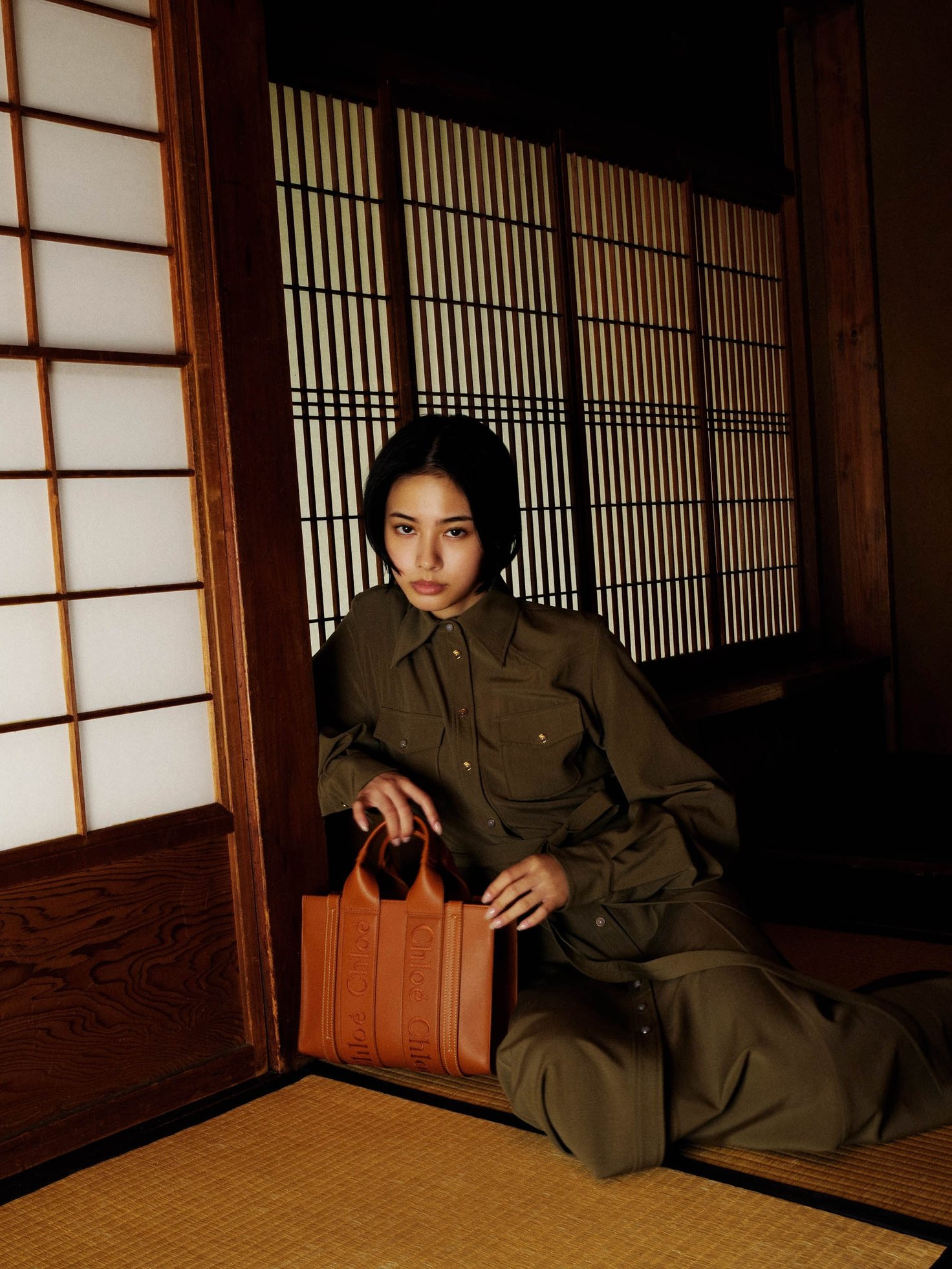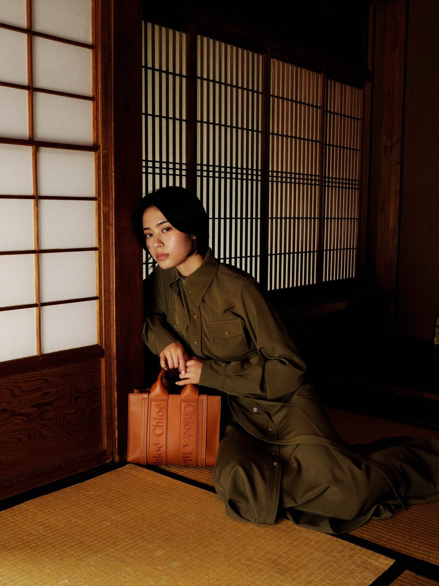 大きくロゴがあしらわれたリボンがアイコニックな「クロエ(Chloé)」の人気シリーズ「ウッディ(Woody)」。2020年に登場して以来、様々なサイズや素材で展開され、ブランドのアイコンバッグとしてその地位を確立している。そんなシックなムード漂うレザー素材のトートバッグを手に持ち、クロエの最新コレクションに身を包むのは、19歳の女優 安斉星来。秋の気配が近づく東京の下町で、情緒あふれる日本建築とクロエのモダニティが織りなす心地よいコントラストを、写真家の鈴木親が描き出す。