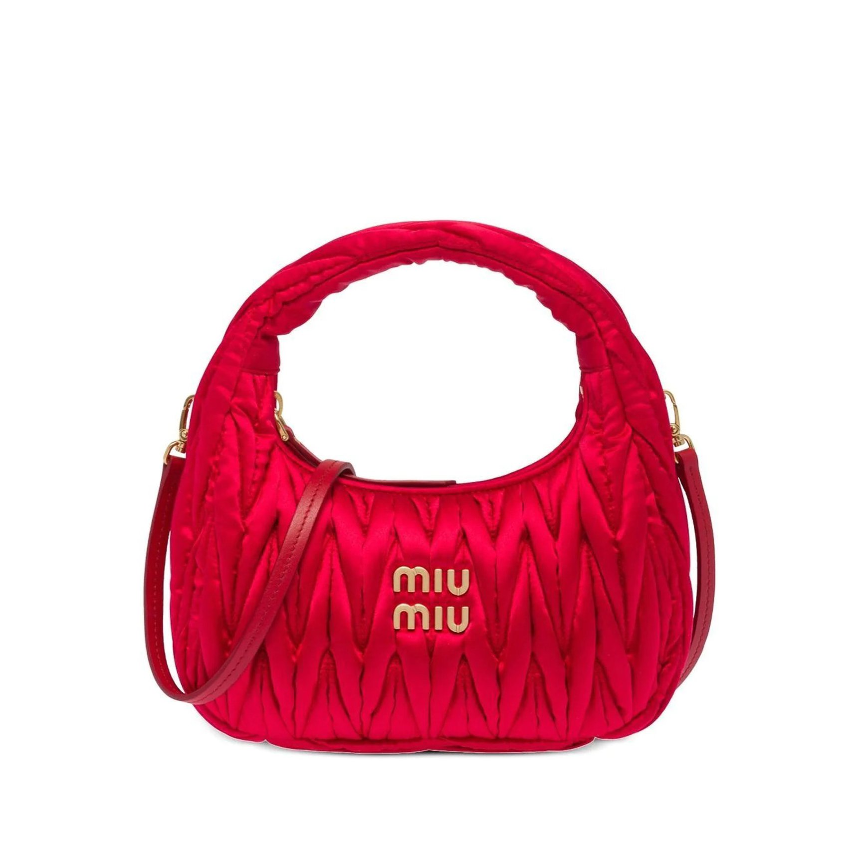 心躍るレッドのサテン生地が気持ちを盛り上げる、「ミュウミュウ(MIU MIU)」のミニバッグ。シグネチャーの“マテラッセ”は、可憐なスタイリングにもハンサムなルックのスパイスとしても◎。ポジティブな影響力を与えてくれそうなカラーアイテムを、今季はバッグから取り入れてみては?
