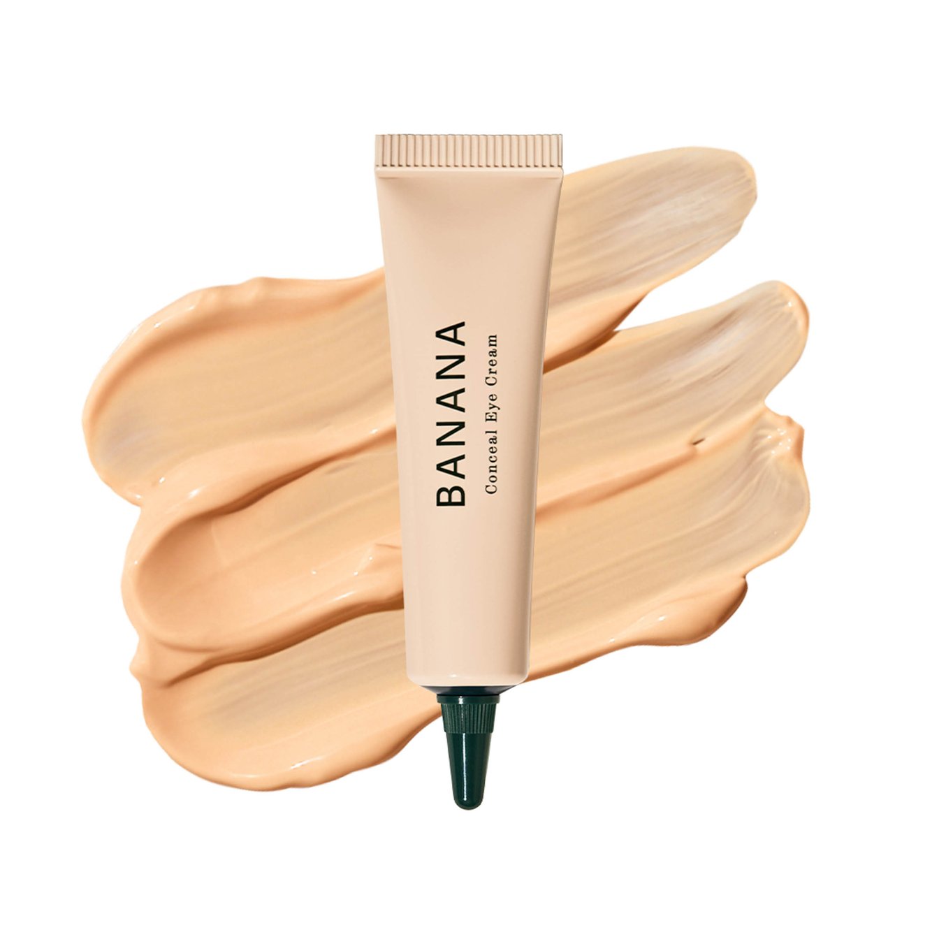 バナナ コンシールアイクリームは、アイクリーム、コンシーラー、トーンアップの3つの役割を兼ねた朝用クリーム。バナナエキスなどの植物由来成分やペプチド、パンテノールなどを配合し、クマやくすみをぼかしながら、ツヤ感のある目元へと導きます。