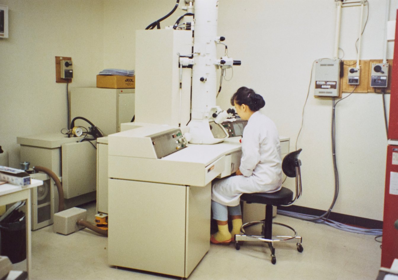 当時の粉の分析には、小さな電子顕微鏡を使っていました。電子顕微鏡って2種類あって、粉の形を拡大して見ることができる「走査型電子顕微鏡」の管理を任されていました。粉を開発されている方たちが見たいものをきちんと見ることができるようセッティングする役目を担っていました。みんなよく壊すから、そのたび修理のおじさんを呼んだりしなくちゃいけなくて、「お嬢ちゃんいつも大変だね」って言われたりしてました(笑)。あとは、研究所の上司が自分で見る暇がないときに代わりに見て分析したりもしていましたね。