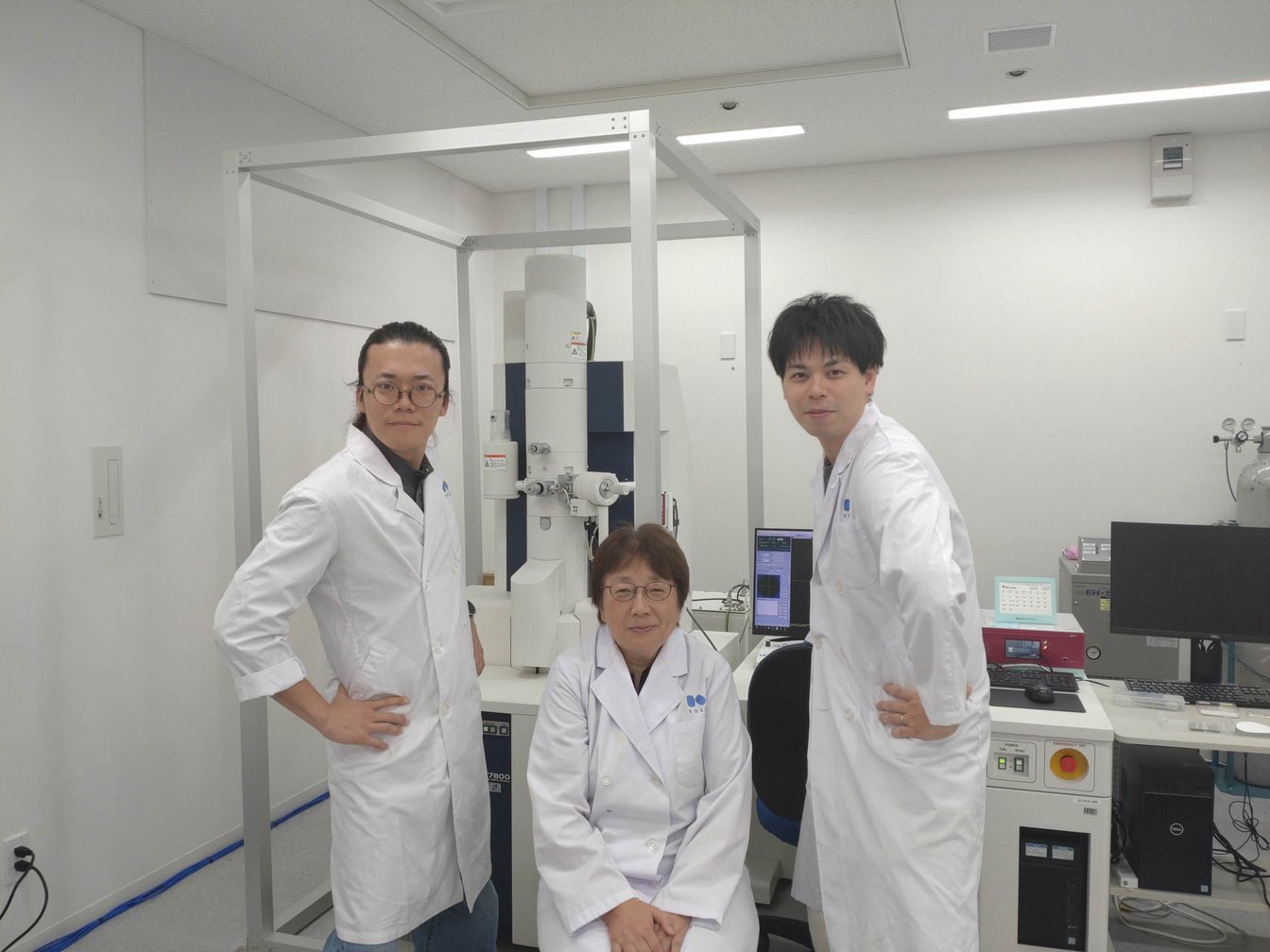 2人の若手研究員と共に。左から太田さん、山下さん、永塚さん