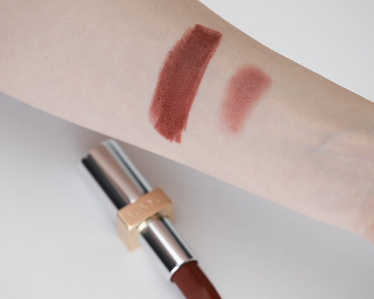 ハイパーマットとはこれいかに?とドキドキしましたが、するすると唇に塗ることができ、ぼかしやすいので意外と使いやすい。塗ったあとは、パウダリーだけど少ししっとりするような質感です。思い切ってディープカラーを楽しむのをおすすめします。