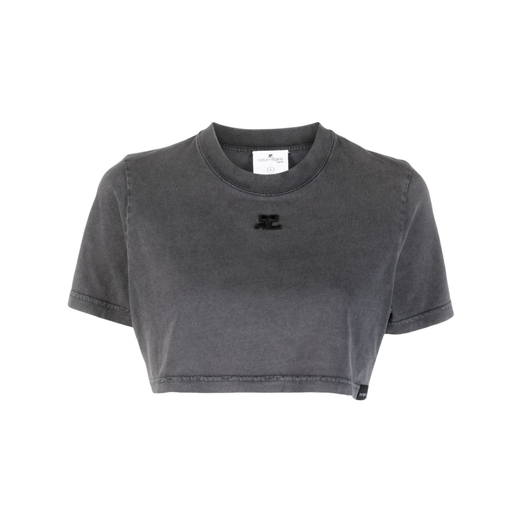 アクティブなスタイリングに取り入れたい、「クレージュ(Courrèges)」のクロップドTシャツ。モノトーンでまとめた一枚は、シームや裾などに色褪せなどのダメージ加工をオン。グランジムード漂う、甘くないシックな一面に改新的なブランドのポリシーを感じます。