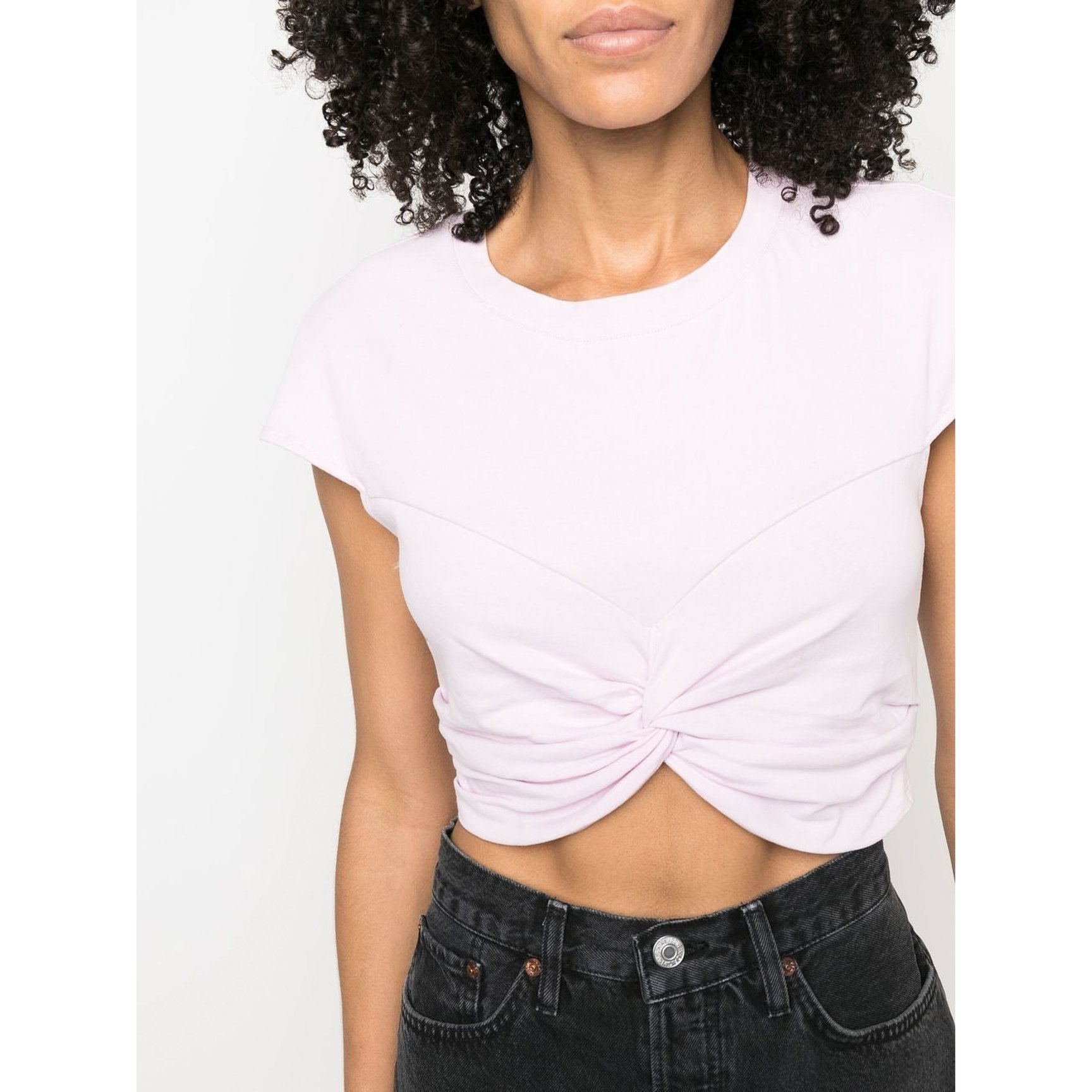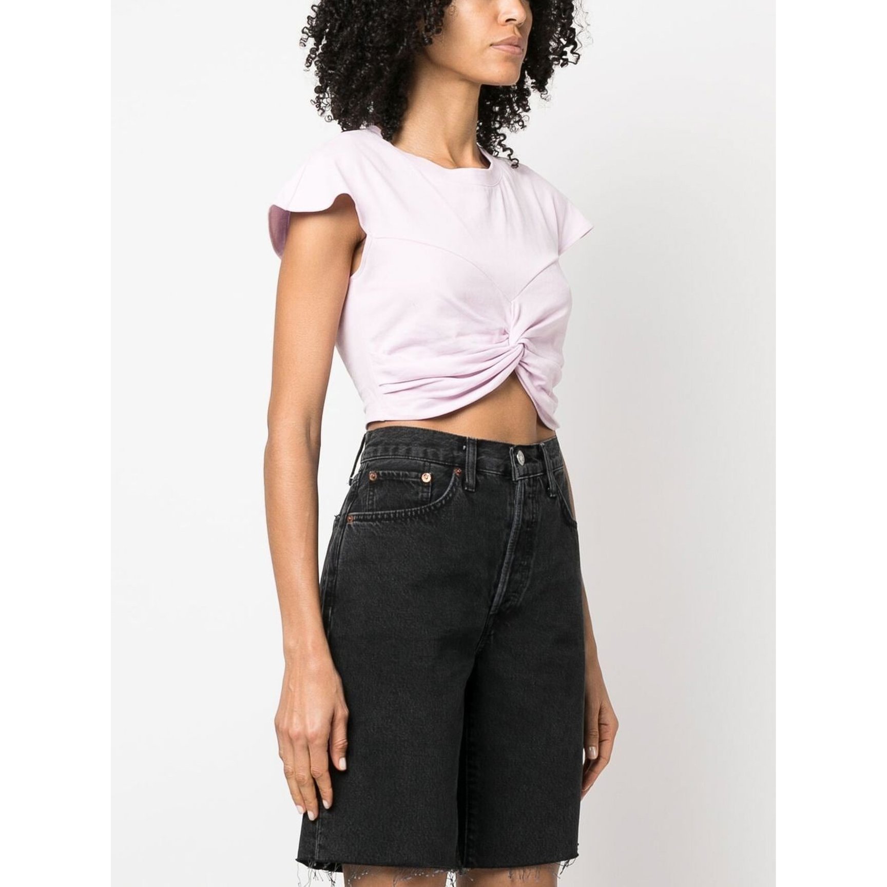 バケーションルックに花を添える、ノットディテールが可憐な「イザベル マラン(ISABEL MARANT)」のオーガニックコットンTシャツ。肌がちらりと覗くウエスト部分と、涼し気に揺れる袖のカットがビーチにも旅行にも◎。水着との合わせもおしゃれに決まります。