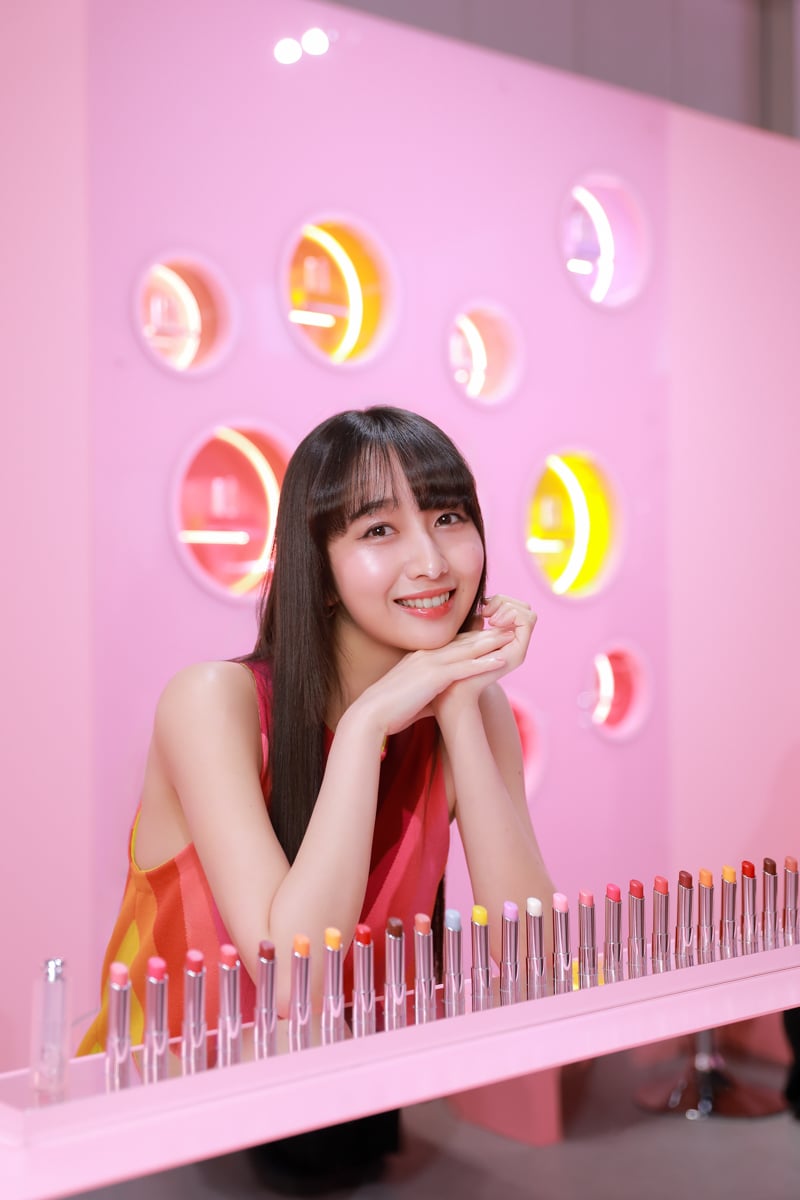 Cocomiのイチオシカラーは、ゴールドパールが上品な輝きを添えるピーチ ピンク「077 キャンディ」。上質な色合いと使い心地に、Cocomiも心を奪われたそう。