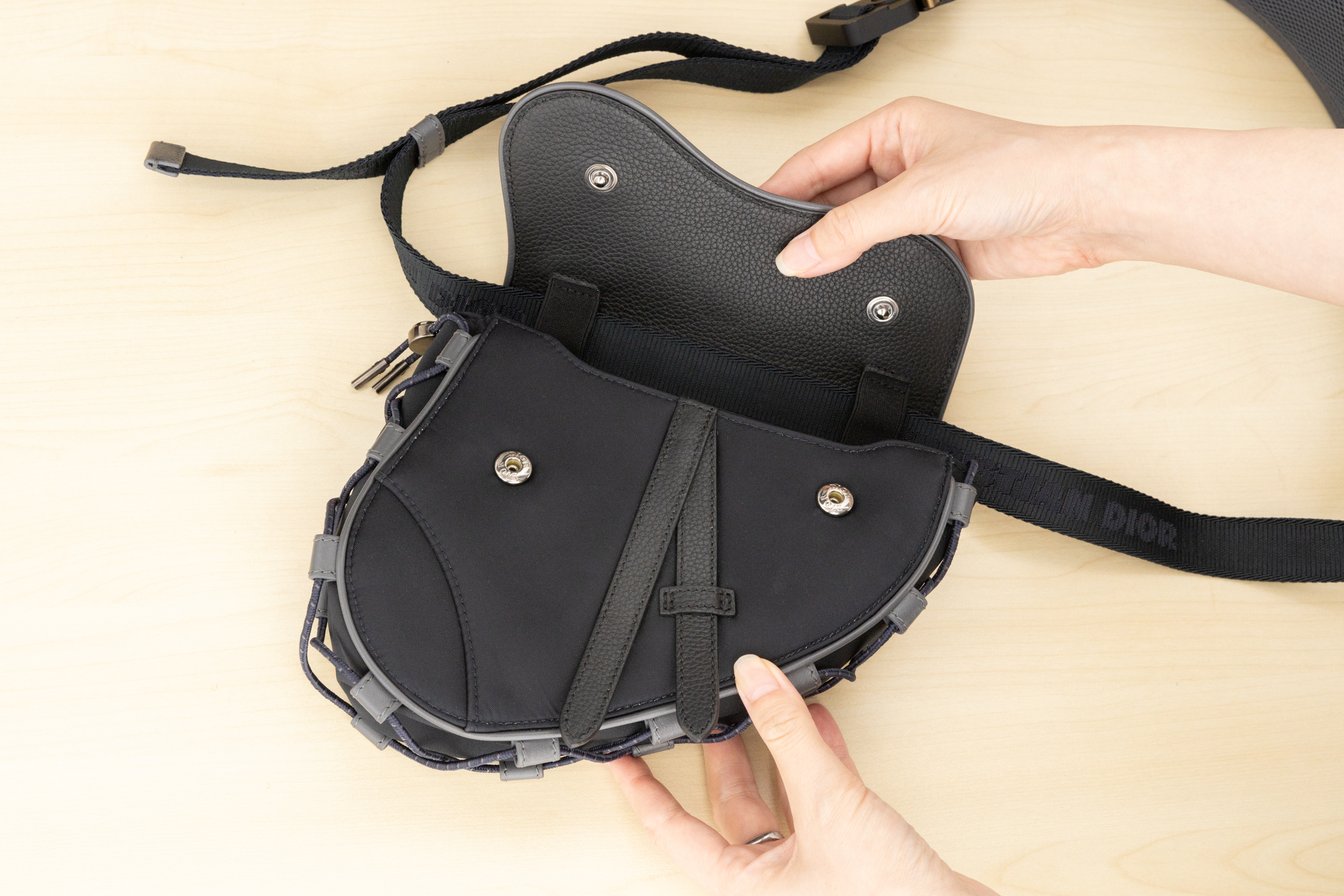 編集K:こちらも表にコラボとわかるようなロゴはついていないですね。ディオールのアイコン的な「サドル」に、サカイのミリタリー&アウトドアテイストを合わせているというデザイン自体がコラボを表しているというか。