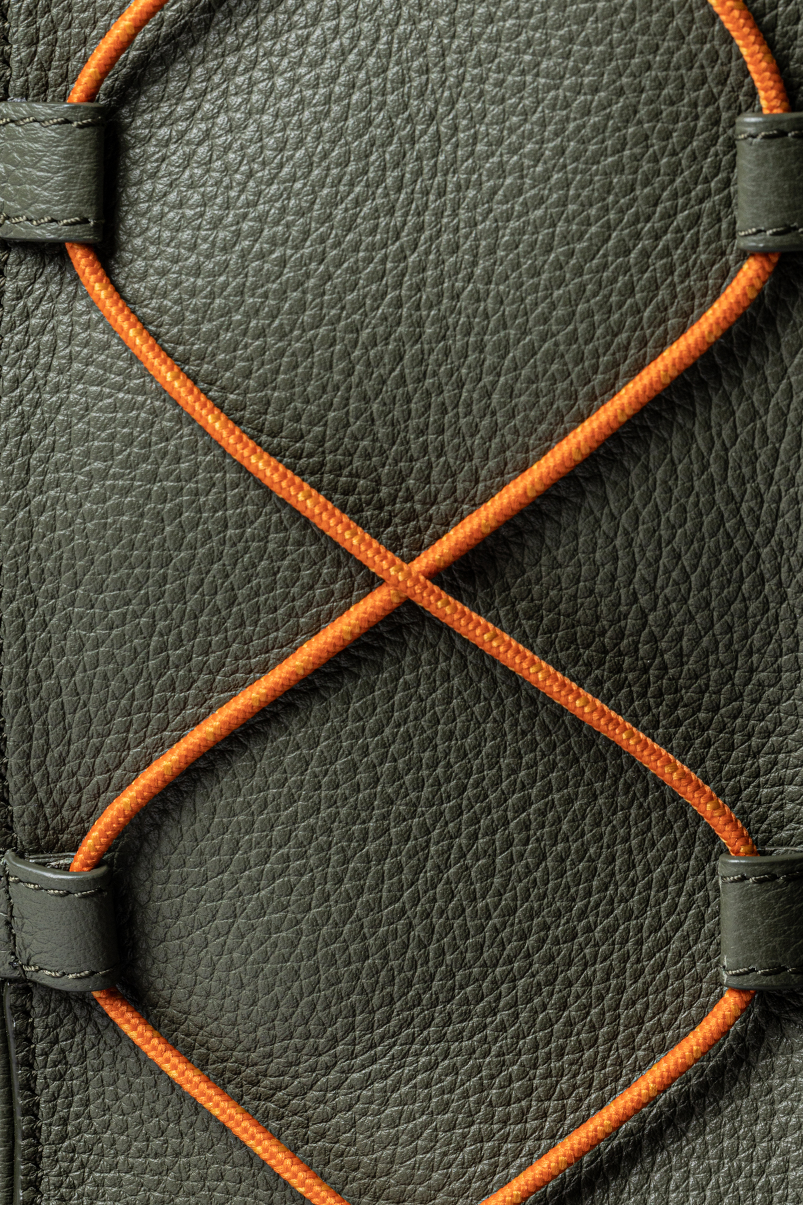 編集M:ディテールがよりギュッと詰まっていますね。こちらのカラータイプはブラックですが、ストラップやバンジーコードはネイビー。レザーのパイピングがブルーグレーだったり、落ち着いた配色なので合わせやすそう。