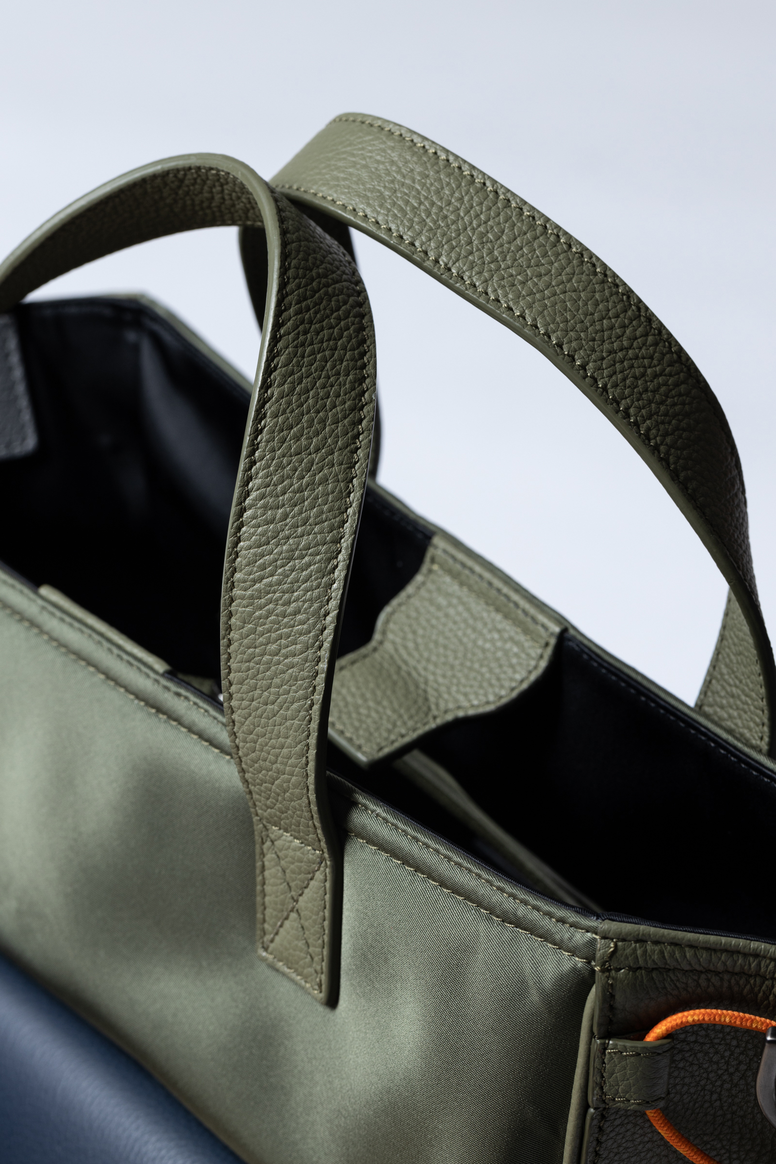 編集M:ミリタリー調のナイロン素材のボディと、上質なレザーの組み合わせ。バッグ部分はボディがナイロン、側面がレザーという素材使いが珍しいですね。