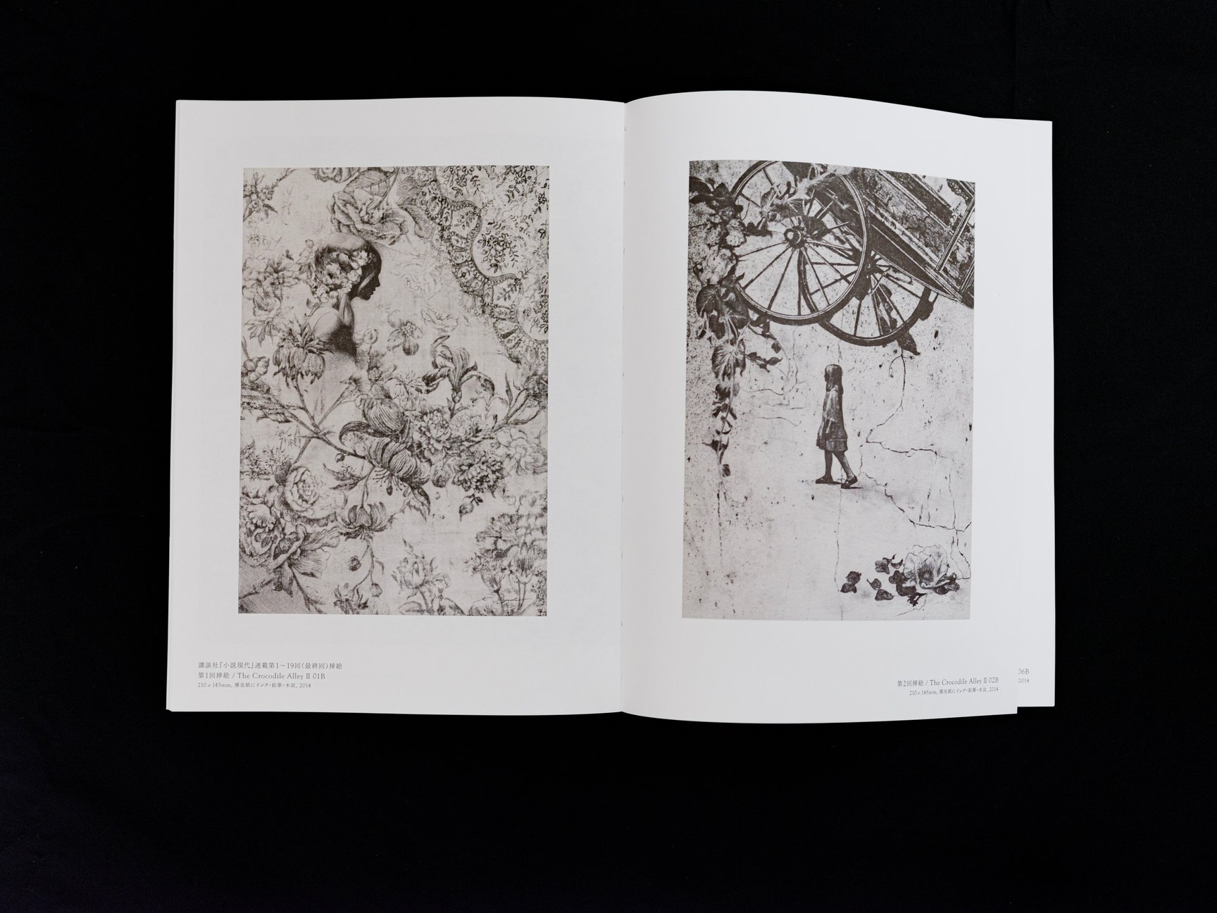 喜多:伊豫田さんは、尊敬している作家にウルトラマンシリーズの怪獣を作り上げたデザイナー 成田亨をあげているんですが、先ほど挙げたボスと同様に、「ロマンティックで美しいものの中にある奇想天外なもの」「単純な綺麗さではない違和感」があるところが魅力だなと思います。技術面ももちろん素晴らしくて、幻想的なイメージを作るために当時のルネサンス期の制作技術を取り入れているそうです。例えば、昔の羊皮紙を買ってきて、イカ墨を用いて描いたり。絵画への伝統や歴史を踏まえて、新しいものを作ろうとしている人はとても尊敬します。