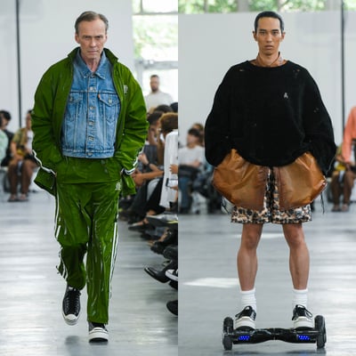 ショーには、バランススクーターに乗るモデルたちも登場し、その姿はユーモラス。シリアスなテーマを、笑いがこぼれるコレクションで伝えるからこそ、よりいっそう服の向こう側にある背景が気になってくる。ダブレットはファッションを通して我々に促すのは、考えるのを止めないことだ。