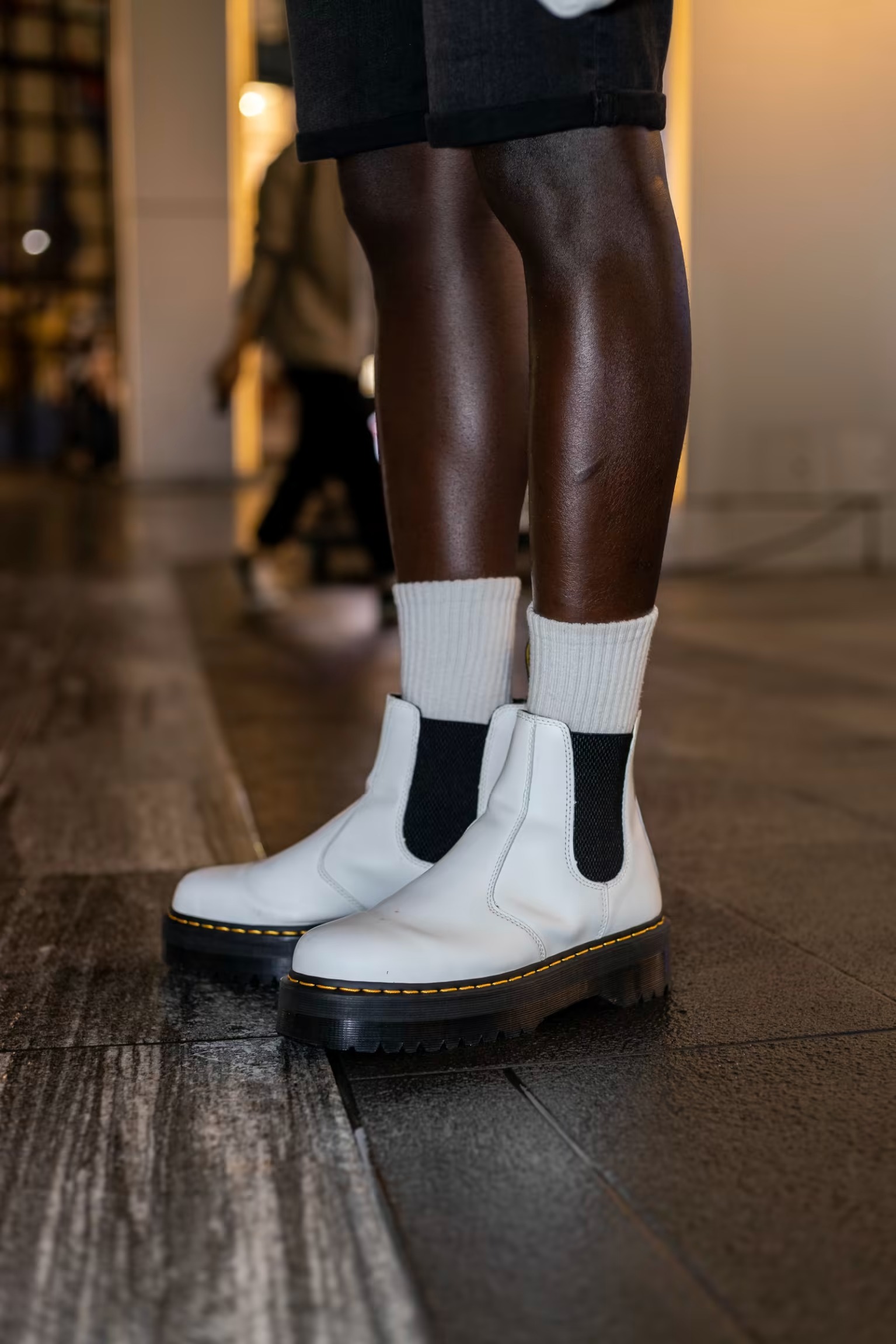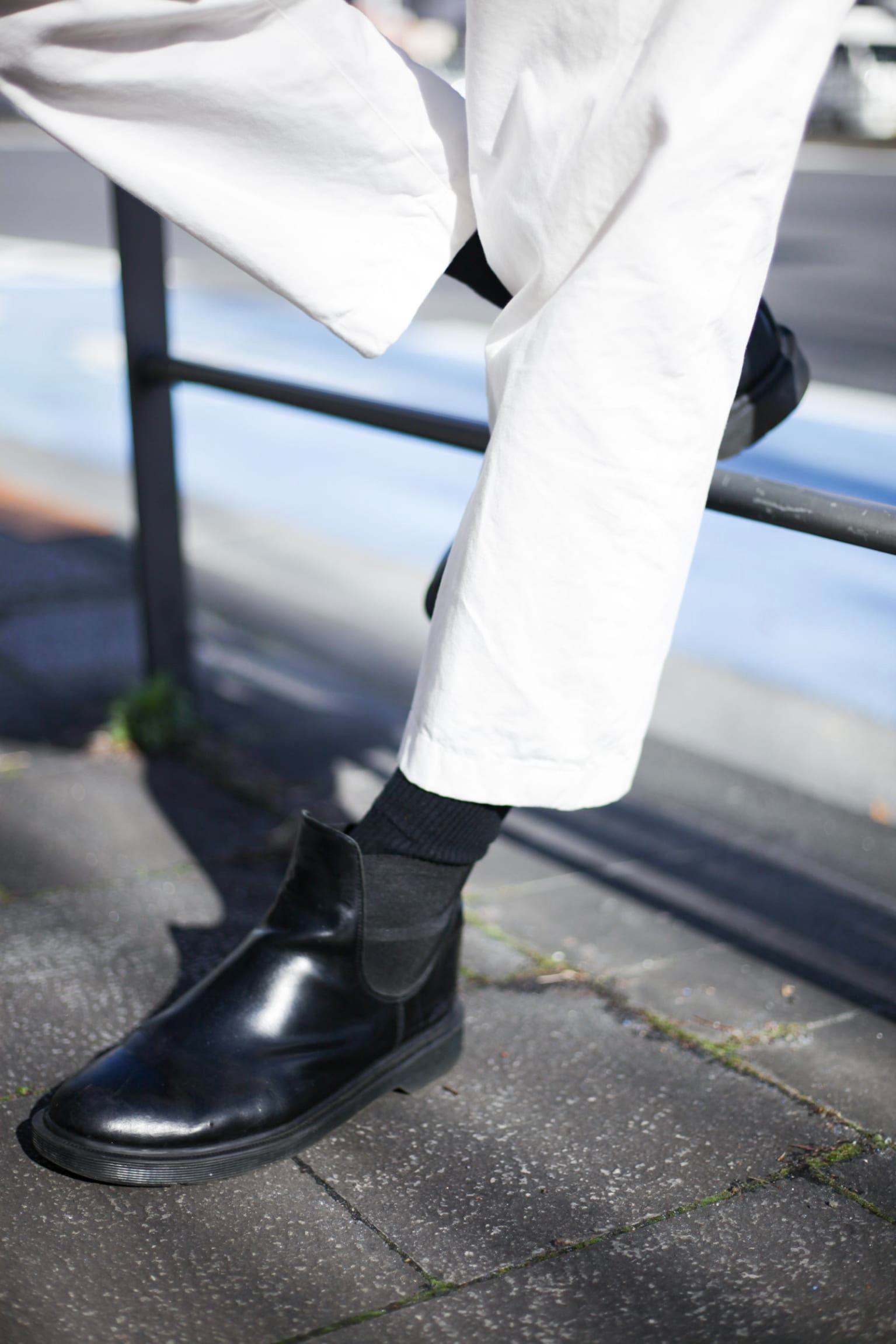 2976が人気の理由の一つは、洗練されたシルエットによってカジュアルやモードなど様々なスタイルに取り入れやすいこと。ワークパンツやデニム、スラックスなど幅広いパンツと相性が良く、ショーツやミニスカートに合わせて着用すると足元でボリューム感が出てスタイリングが引き締まります。