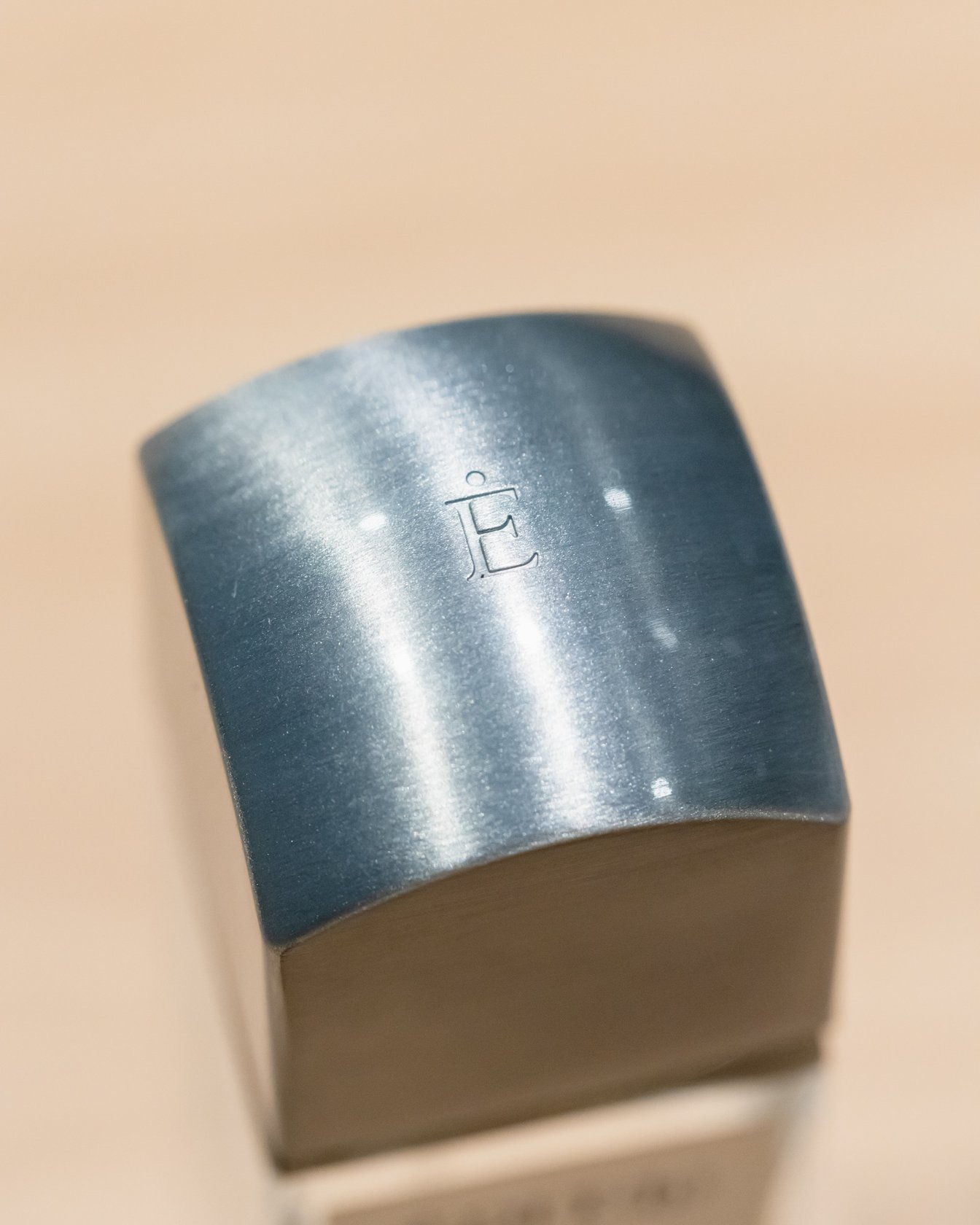 そうです。見た目だけではなくて、素材や伝統技術、ち密な作業などが組み合わさることでハイエンドなものは生まれる。それは100年以上続く歴史がある会社だからこそブレてはいけないところです。フレグランスのガラスボトルは、セミハンドメイドモールディング製というヨーロッパの高級グラスでも用いられている製法で作られていて、重厚感のあるキャップは亜鉛製。亜鉛は朱肉のケースにもよく使われた素材なんです。キャップ表面のヘアライン加工は職人が手作業で仕上げたもので、同じ柄は存在しません。