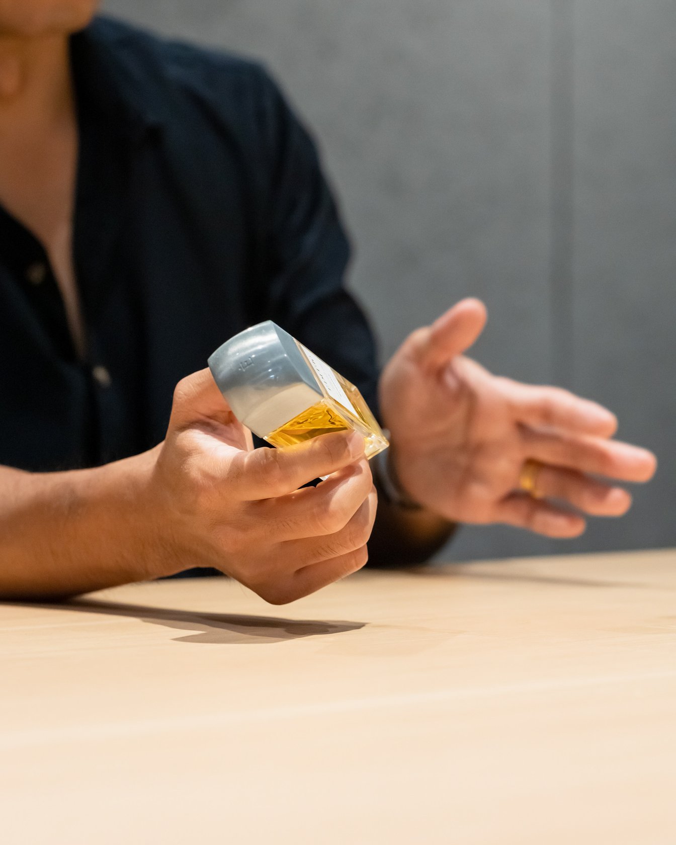 フレグランスは香りが主役ですから、そのほかの要素は極めてシンプルに留めながらも、微細な美しさが宿るようにデザインしました。ミラノの世界的な香水イベント「Esxence 2022」に出展した時は、「ミニマムで完璧なフォルムだ」と言ってくださる方もいたほどです。