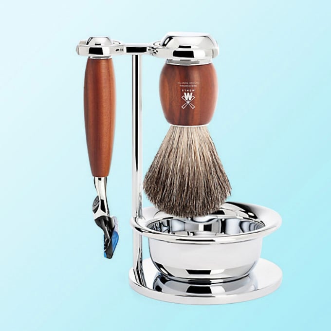 1945年にドイツのエルツ山地に位置するシュトゥッツェングリュンで創業した「ミューレ(MUHLE)」。伝統的なシェービング文化をモダンにアップデートしたFusion対応のレーザー、シェービングブラシ、ステンレスカップ付きの専用スタンドを組み合わせた贅沢なセットが登場します。
