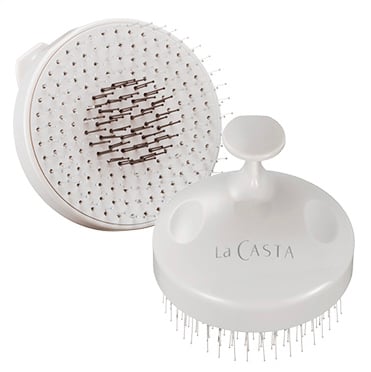 ナチュラル化粧品「ラ?カスタ(La CASTA)」のバスタイムブラシ。ピンの植毛と配列を追求したブラシで、シャンプー?クレンジング時の洗浄やマッサージ、トリートメントのなじませとマルチに使えます。平日のシャンプーから、疲れた週末のケアまでこれ1つで対応できます。