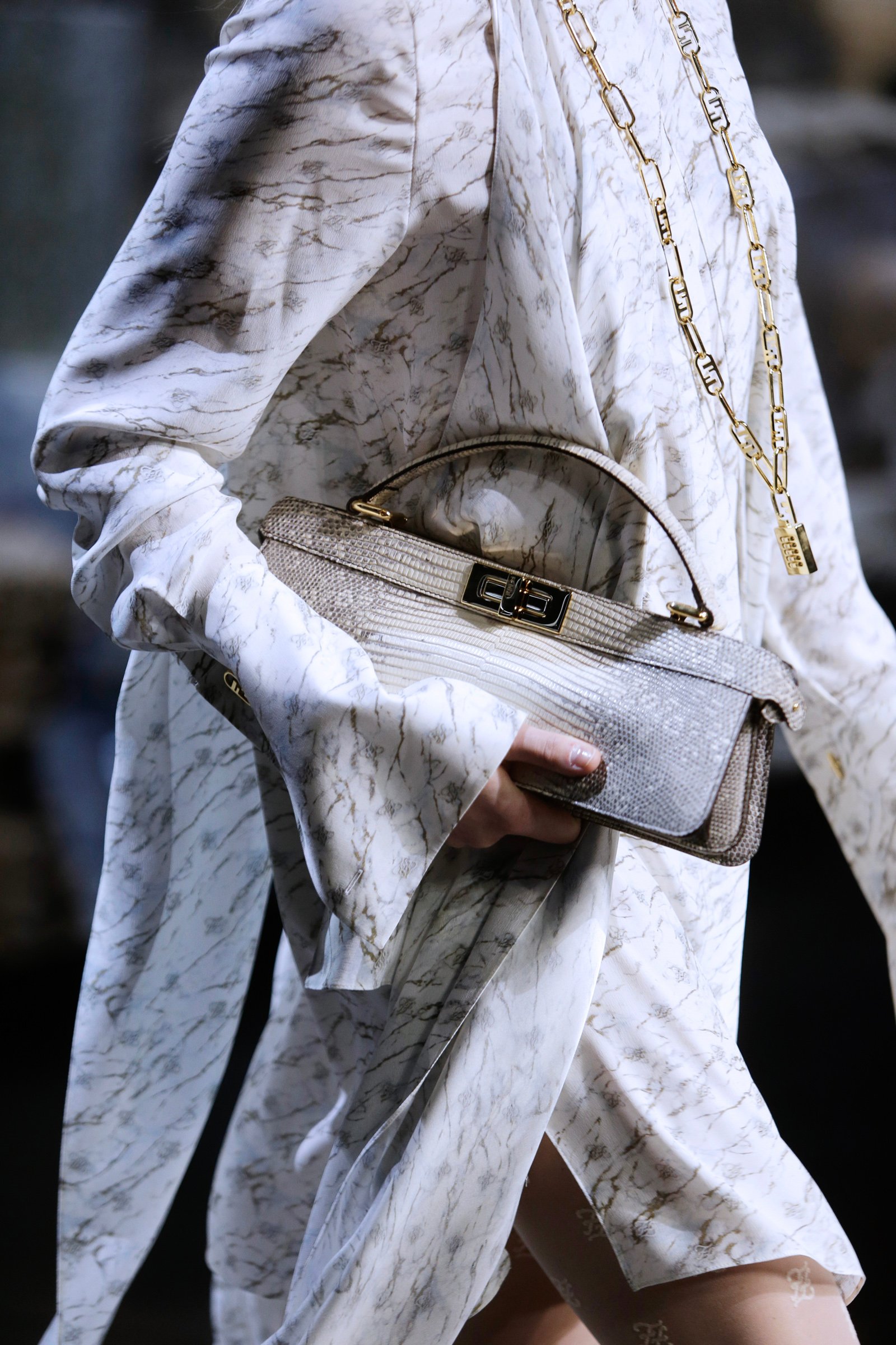 トートバッグ「フェンディ ウェイ(FENDI Way)」、ショルダーバッグ「フェンディ タッチ(FENDI Touch)」も新作。ブランドのアイコニックな「バゲット(Baguette)」は、バロックの花のモチーフをあしらった化粧板で制作された。「ピーカブー(Peekaboo)」と「サンシャイン ショッパー(Sunshine Shopper)」は、デザインにひねりが加わっている。