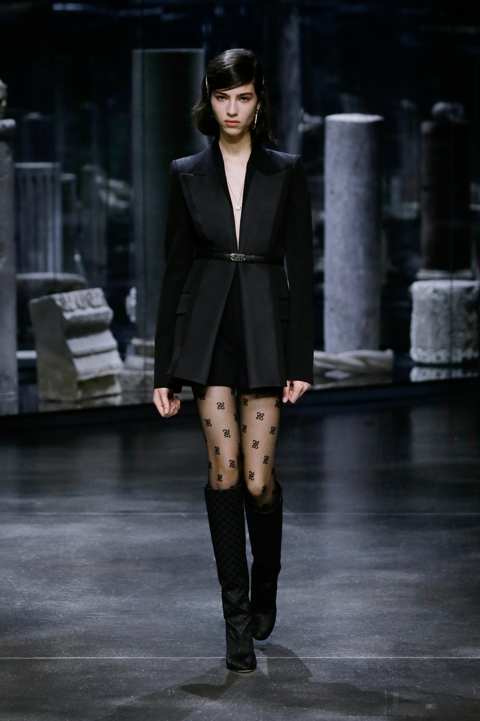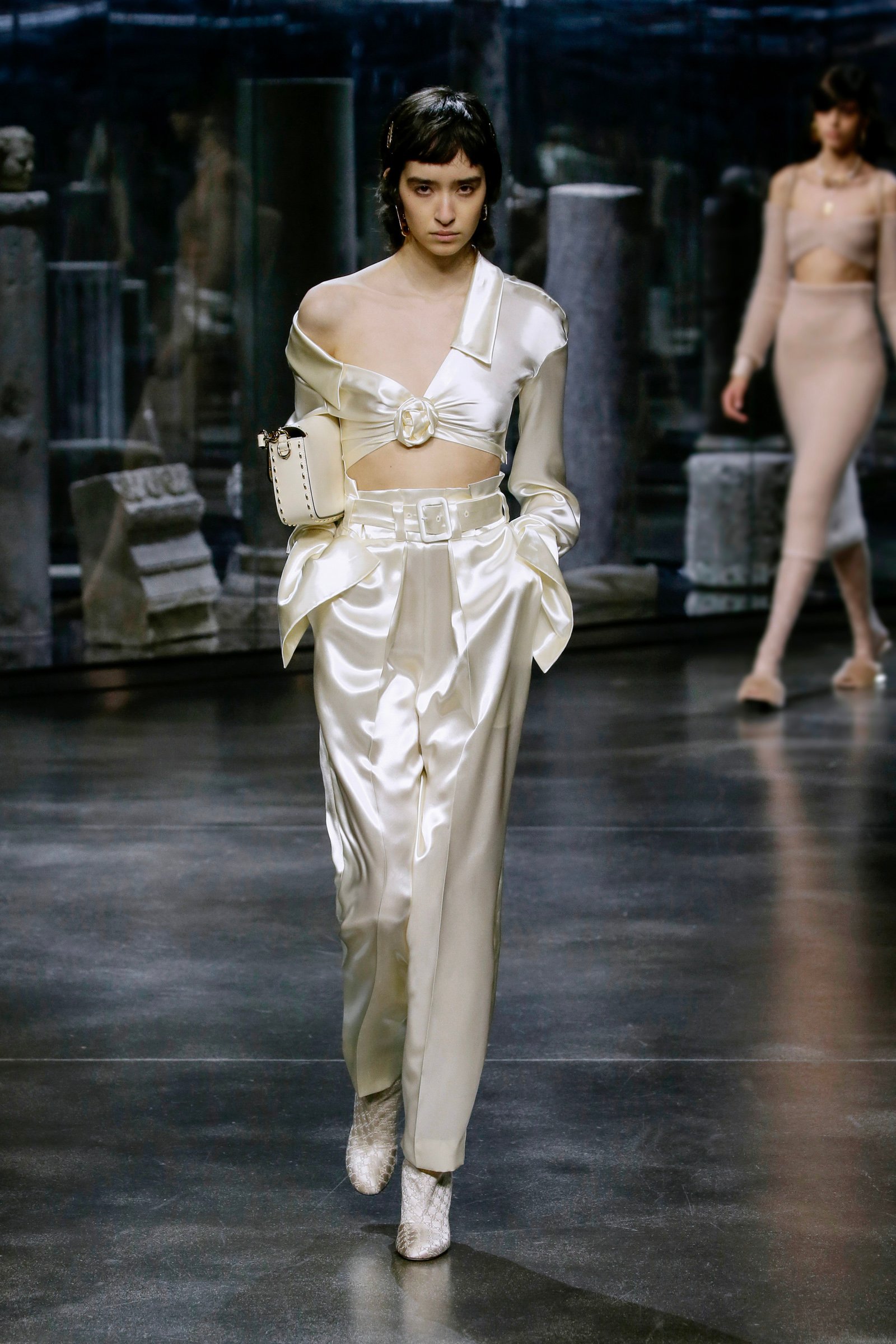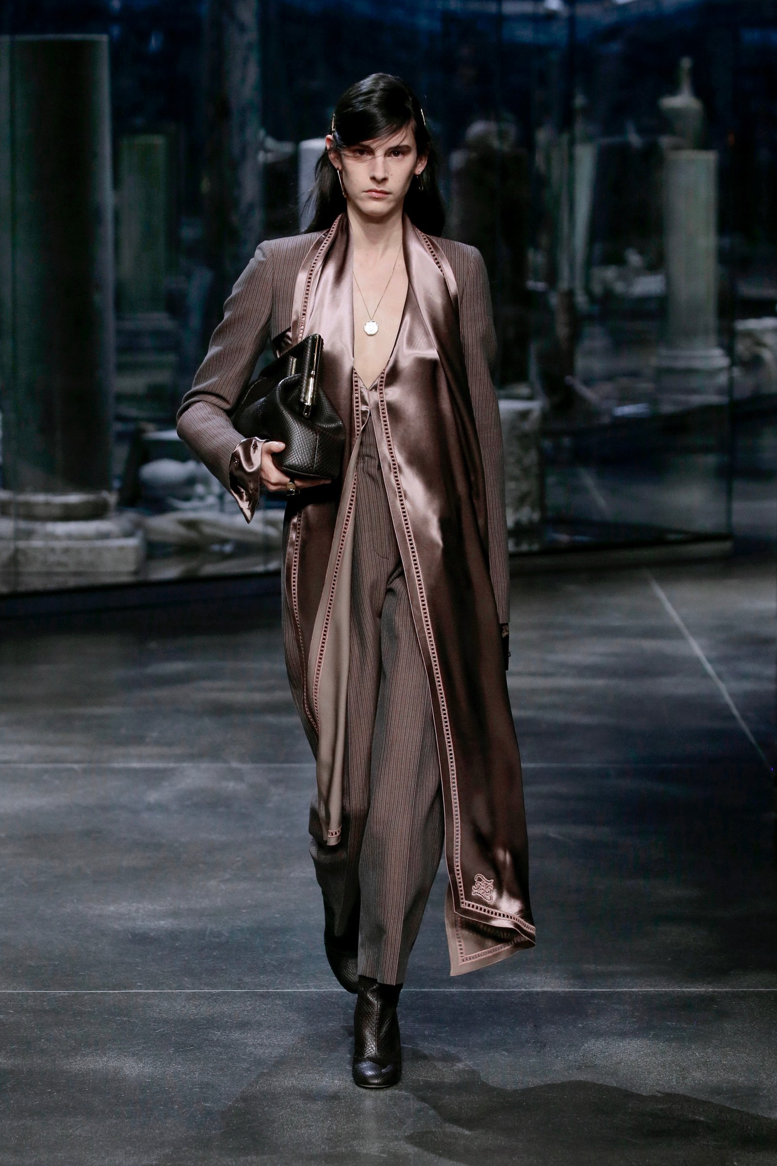 今回も「ファミリー」は着想源となり、フェンディ家5人姉妹のワードローブからインスピレーションを得たという。フェンディならではのフェミニニティとサヴォアフェールを継承しながら、デイリーウェアをラグジュアリーに昇華した。