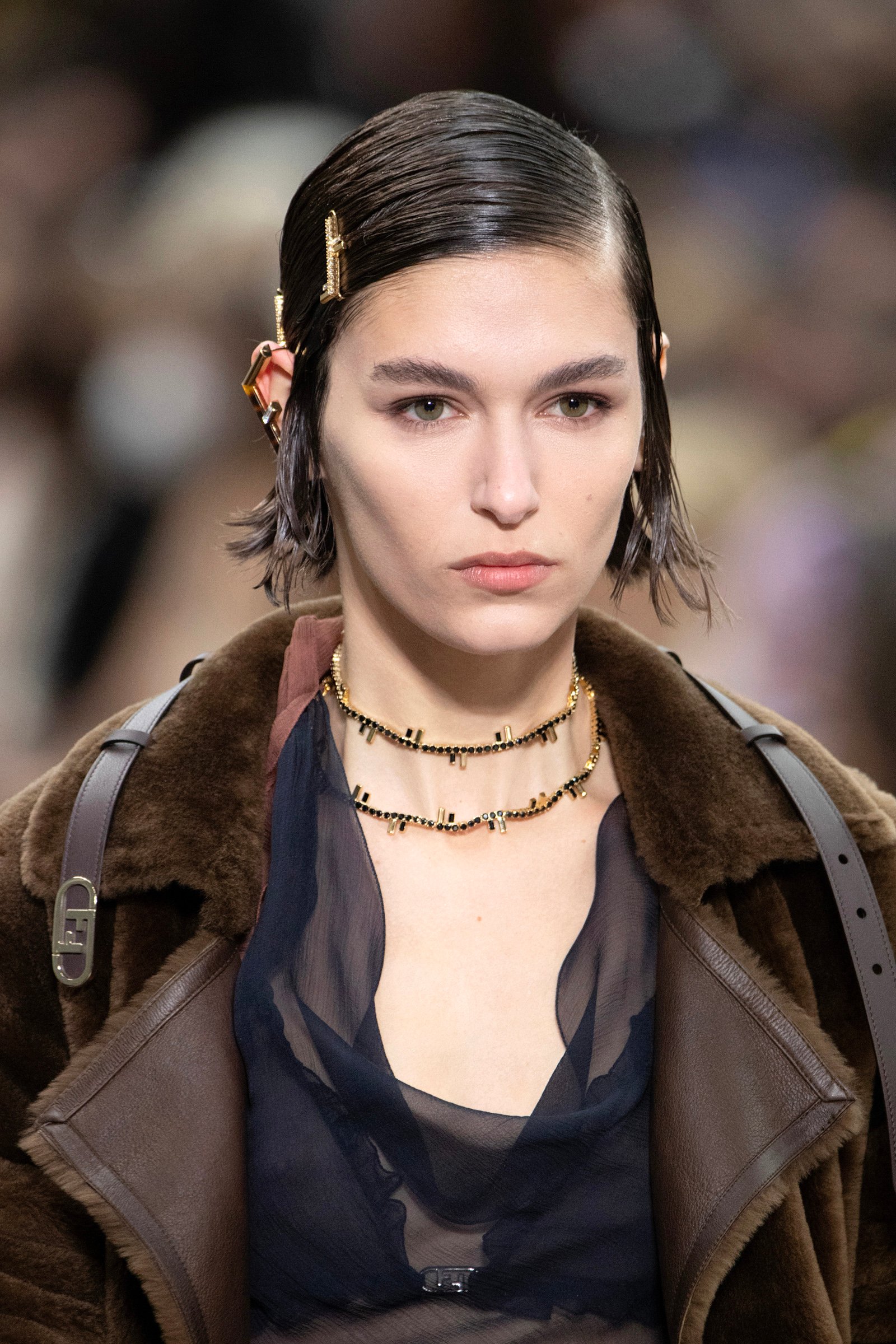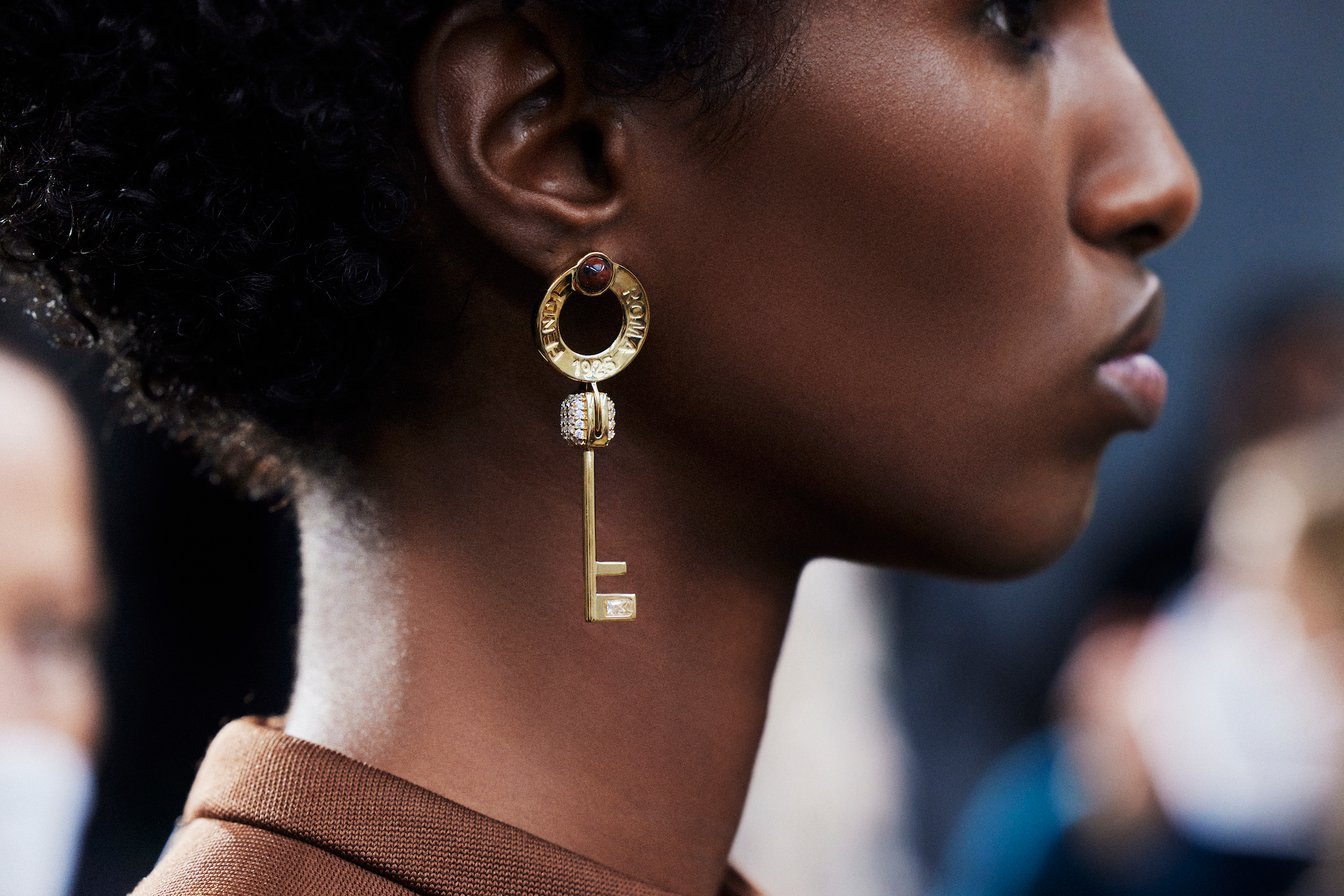 デルフィナ?デレトレズが手がけるジュエリーでは、新たに「F」を鍵のモチーフに変えたイヤリングやペンダントなどが登場した。創業年の「1925」が刻まれ、アクセサリーにおいてもフェンディの歴史やヘリテージへのオマージュを見て取れた。