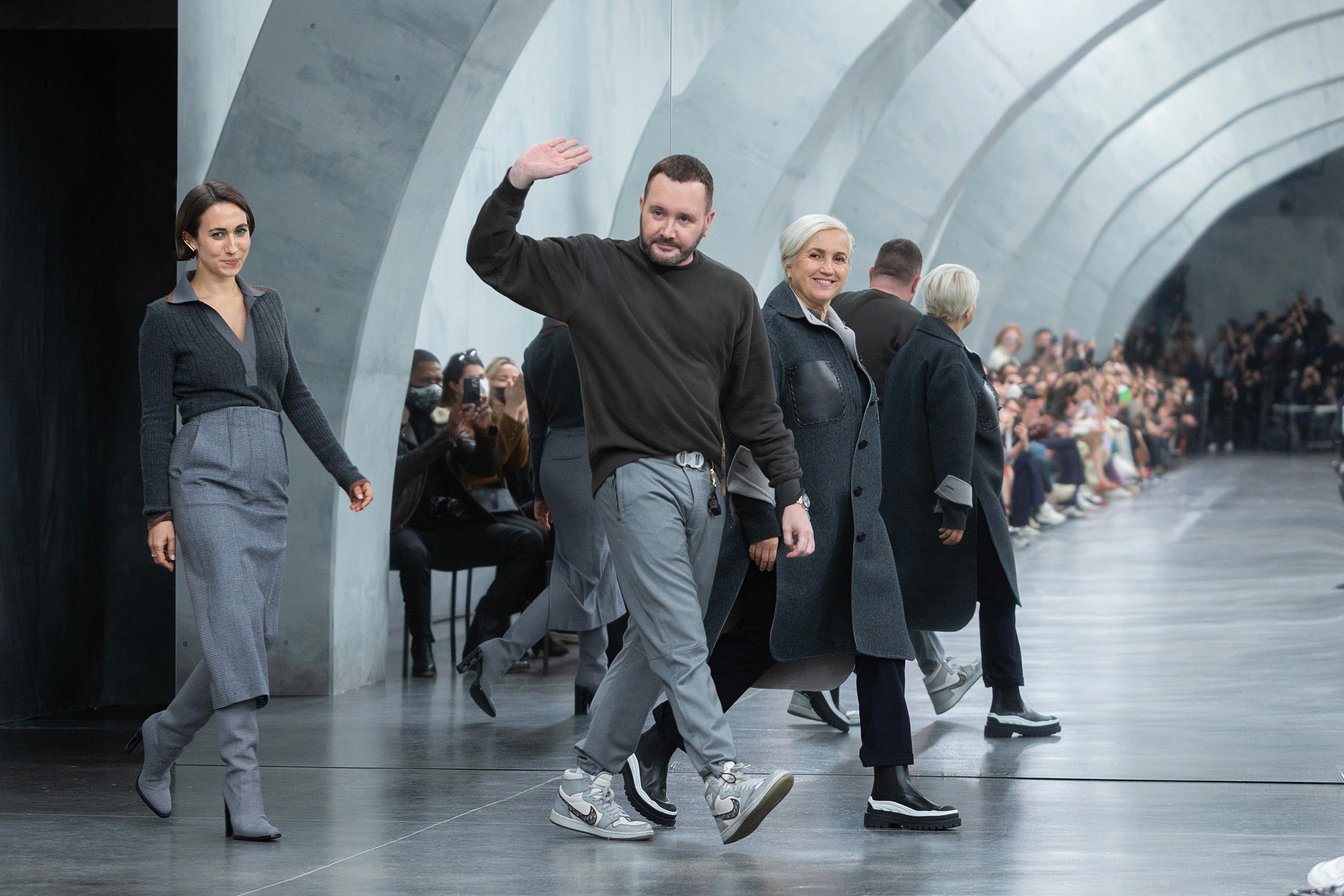 左から、デルフィナ?デレトレズ、キム?ジョーンズ、シルヴィア?フェンディ(キムは自身が手掛けたDIOR×NIKE AIR JORDAN 1、シルヴィアはDIOR AND SACAIのチェルシーブーツを履いてフィナーレに登場)