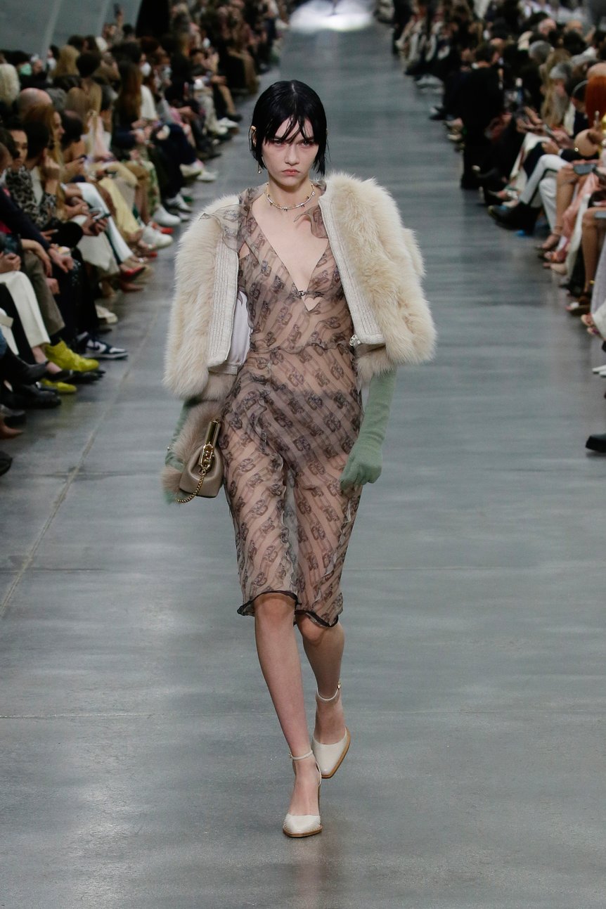 「フェンディ(FENDI)」が、2022-23年秋冬コレクションのランウェイショーをミラノで開催した。アーティスティック ディレクターのキム?ジョーンズ(Kim Jones)はフェンディ一族により受け継がれてきたワードローブに着目し、アーカイヴを再解釈。メンズ仕立てのジャケットに透ける素材のドレスを合わせるなど、力強さとしなやかさが共存する大胆不敵なスタイルを提案した。