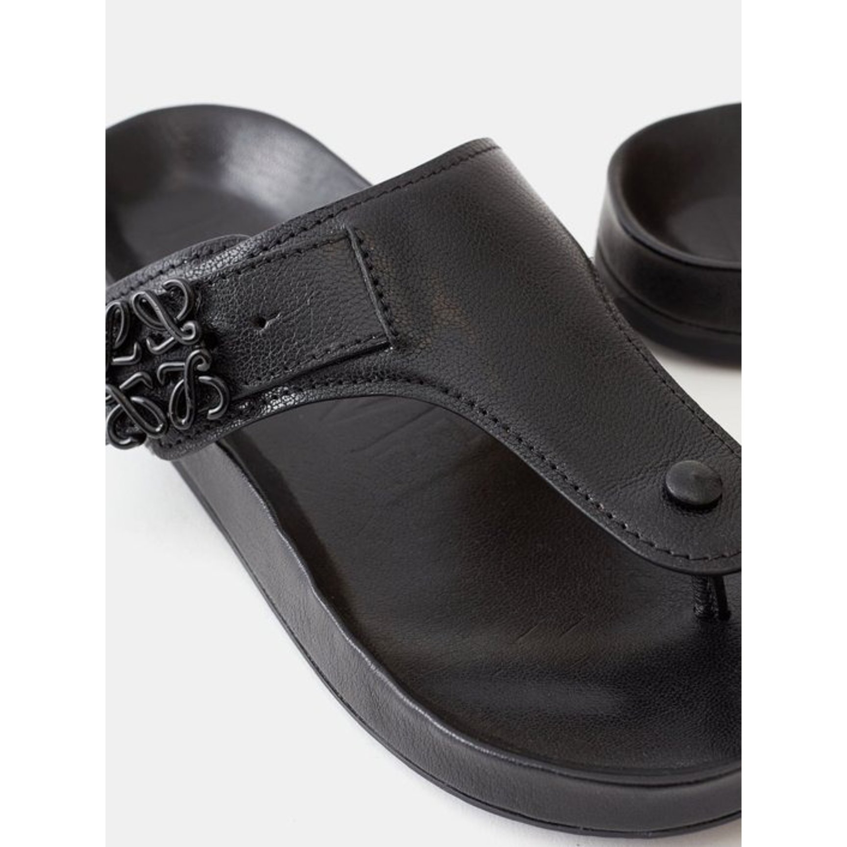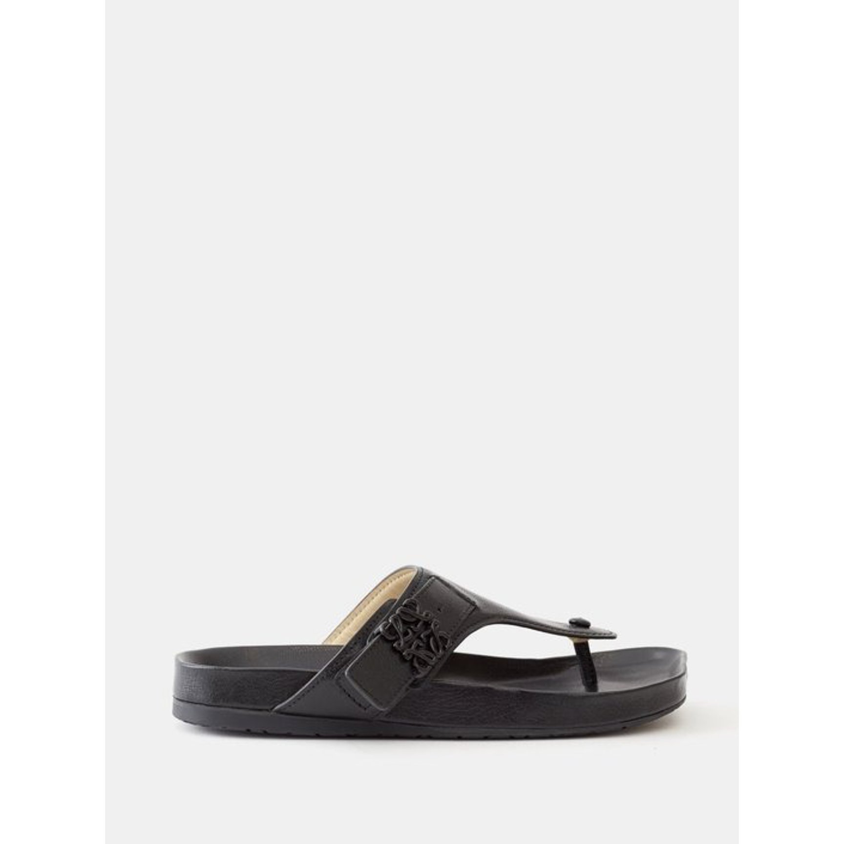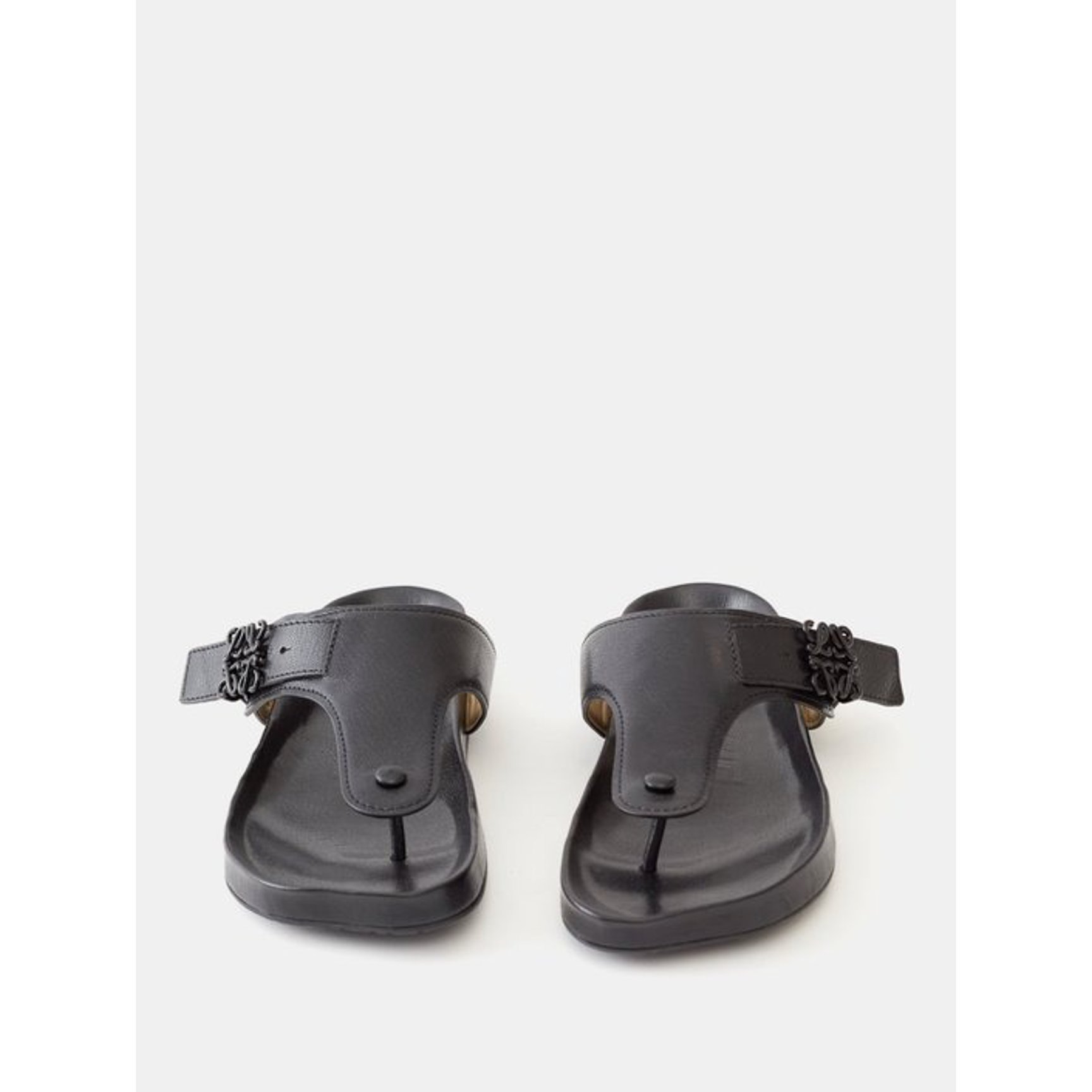 快適でいて、上品さも損なわない「ロエベ(LOEWE)」のレザーサンダル。ベルト部分にはシグネチャーモチーフであるアナグラムがあしらわれています。エナメル加工が施されているため、程よく艶感がありエレガント。