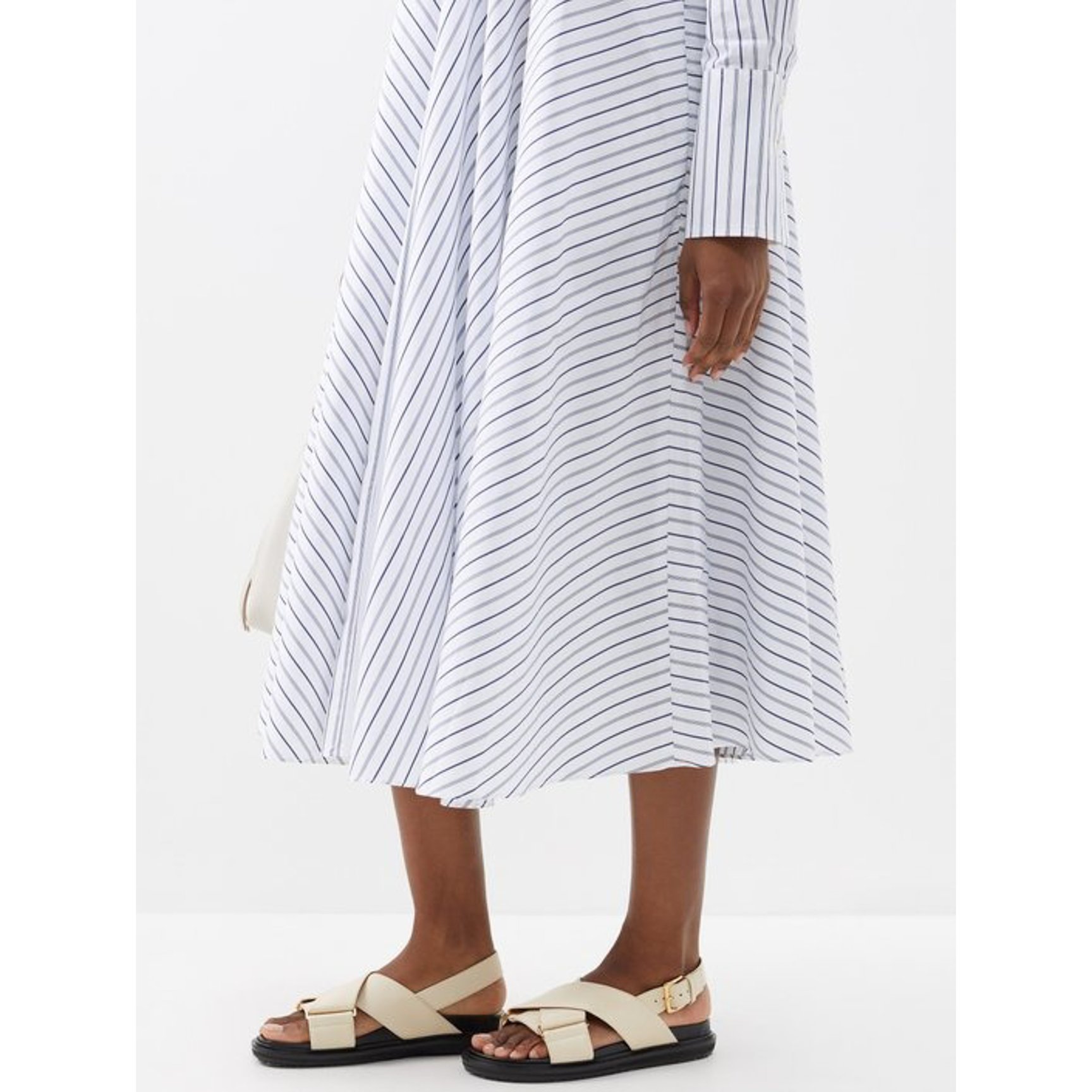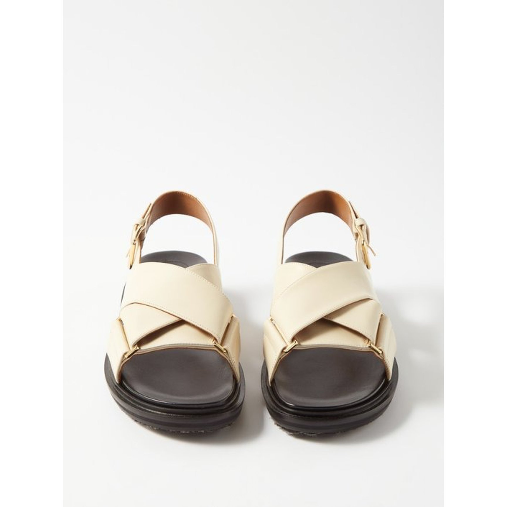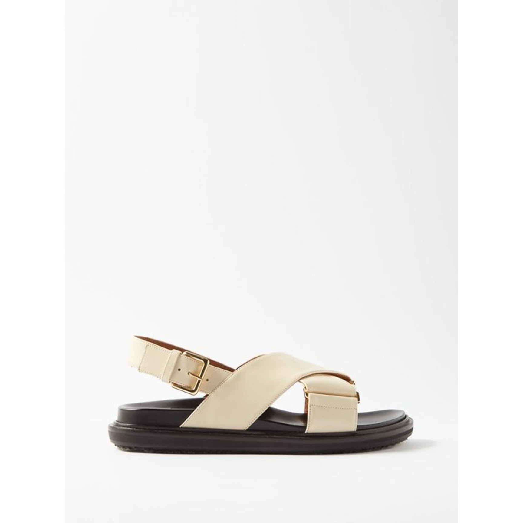 スポーティライクに履ける「マルニ(MARNI)」のフスベットサンダル。オフホワイトのレザーで肌馴染みがよく、頑丈なワイドストラップが安定感のある履き心地を叶えてくれます。