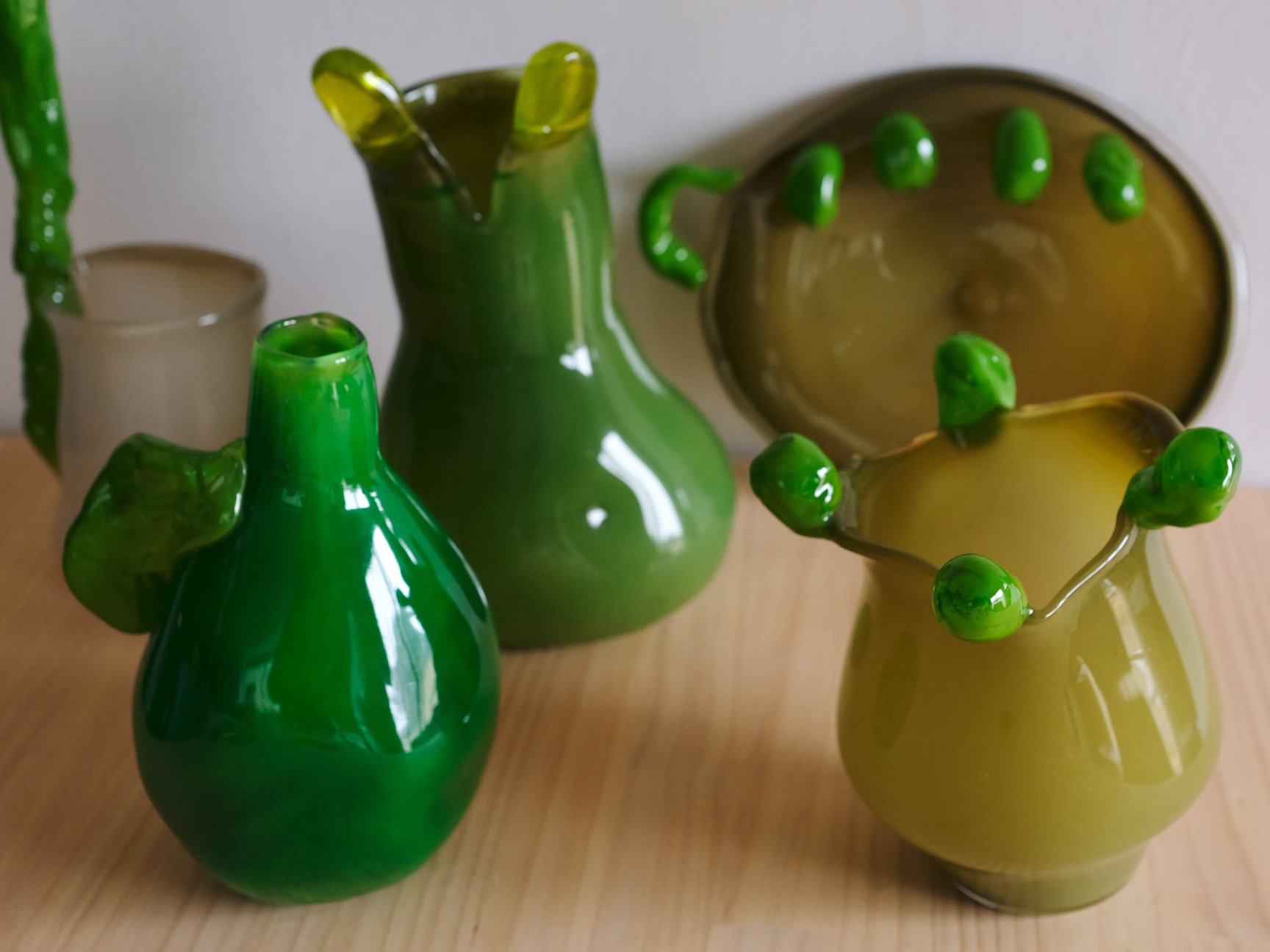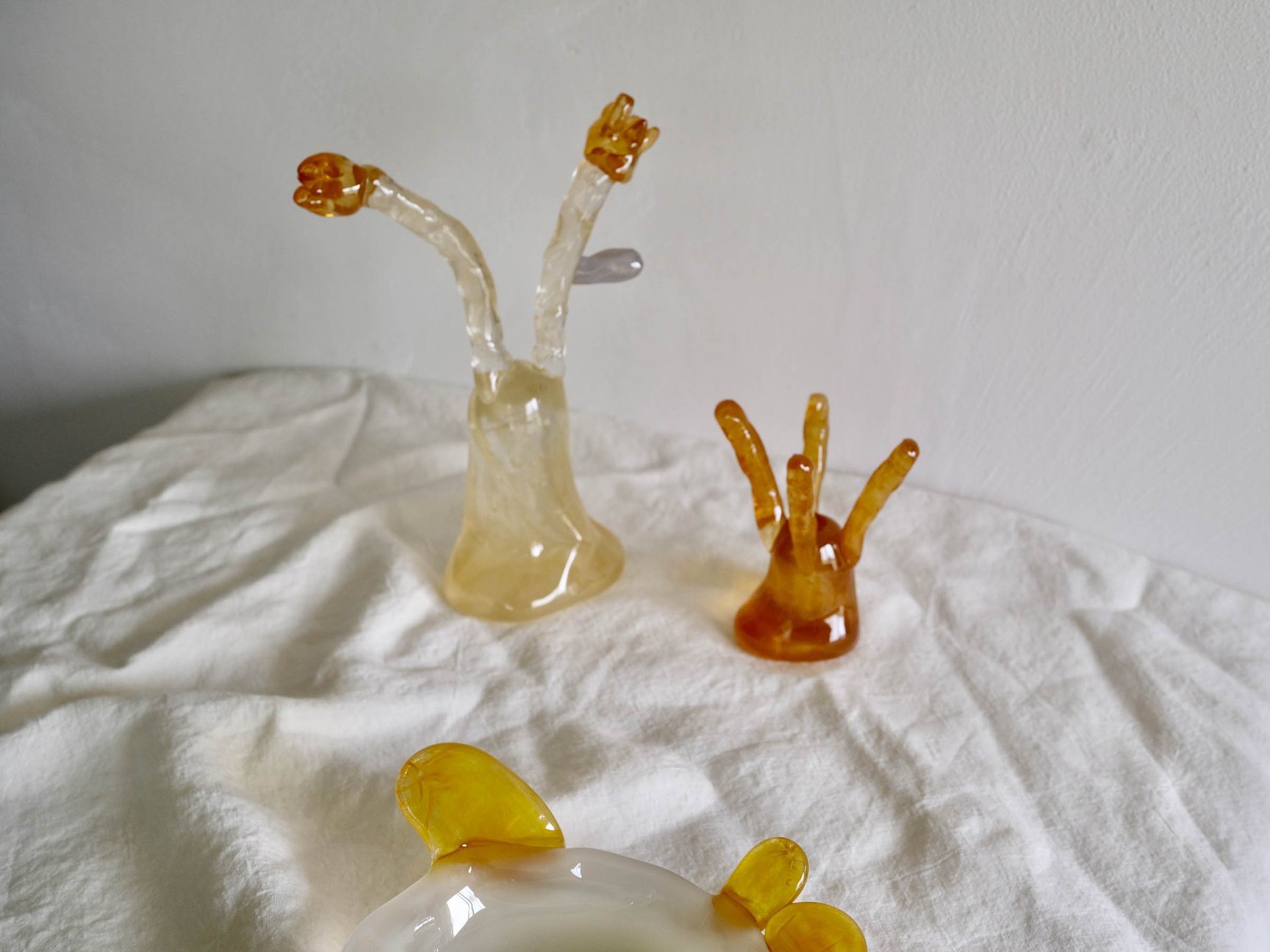 富山を拠点にガラスの作品を制作しているYuri Iwamoto(以下、岩本)。同氏の作品は、意思を持った生き物のように、うにうにと動き出すようなシルエットが特徴だ。「ガラスの“意思”をなるべく留めるように形を作ることを意識し、素材自体が持っているエネルギーを発露させることを大切に制作をしている」(同氏)という。