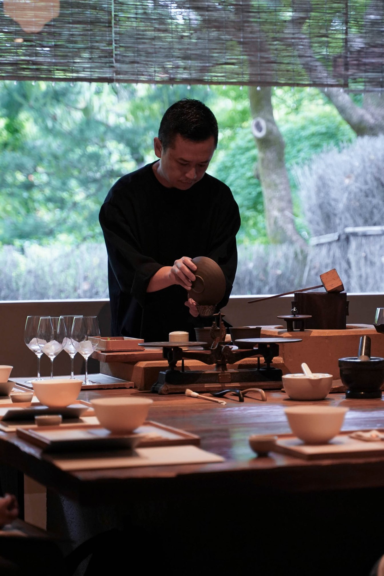 「調香を愉しむ会」冒頭では茶方薈草司の櫻井真也が新茶を振る舞った