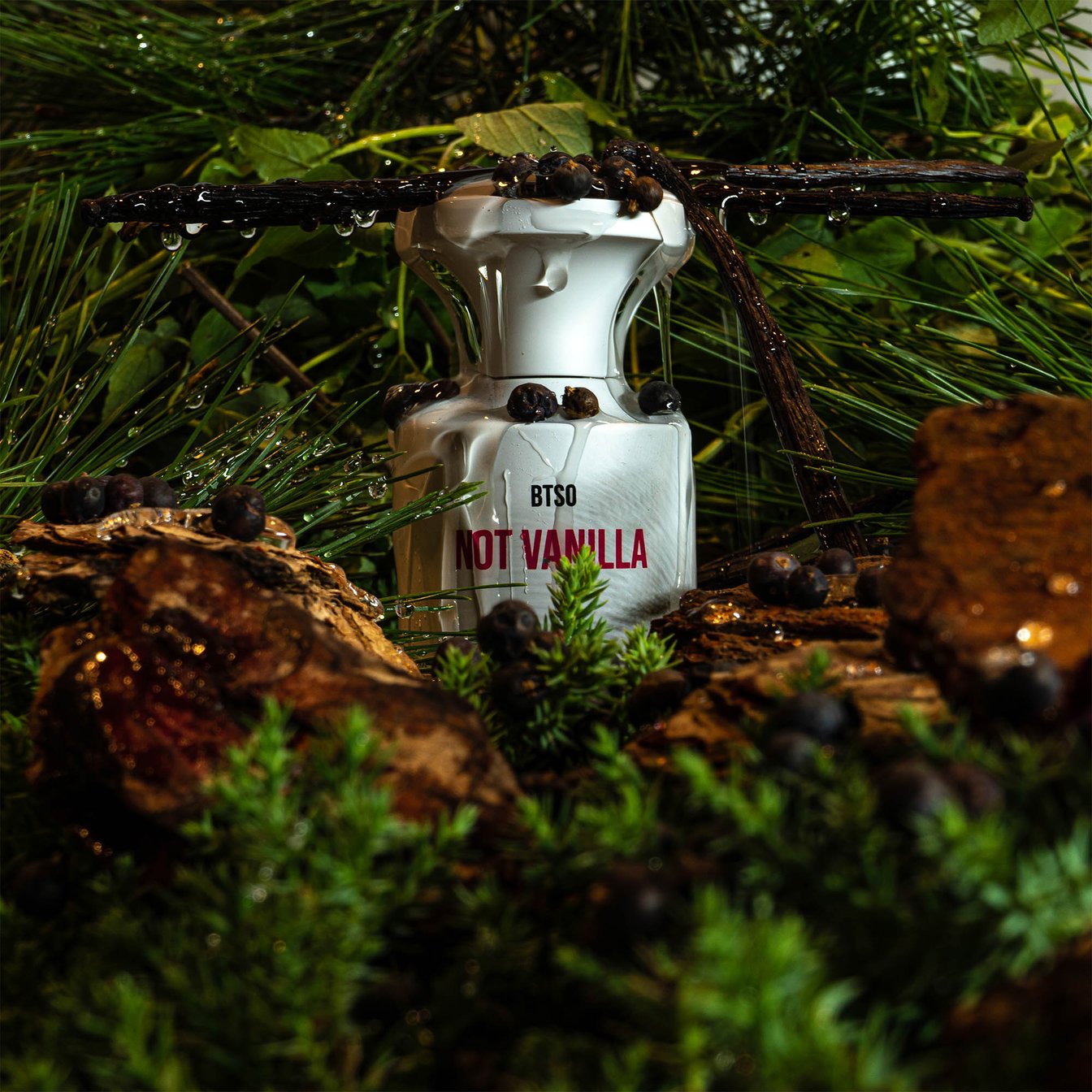 日本で人気のフレグランスのひとつ「NOT VANILLA」。トップはベルガモットやナツメグ、ミドルにバイオレットやバニラ、ベースにはガイアックウッドやプラリネなど、一筋縄ではいかないグルマンノートをフランク?フォルクルが調香。オードゥパルファム(50mL 税込2万4200円)