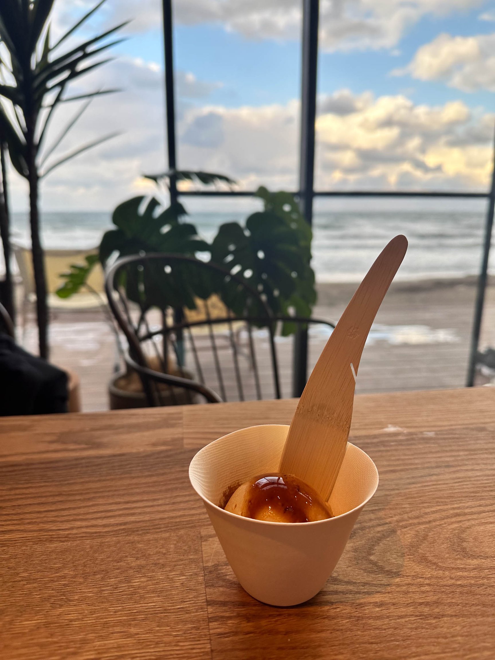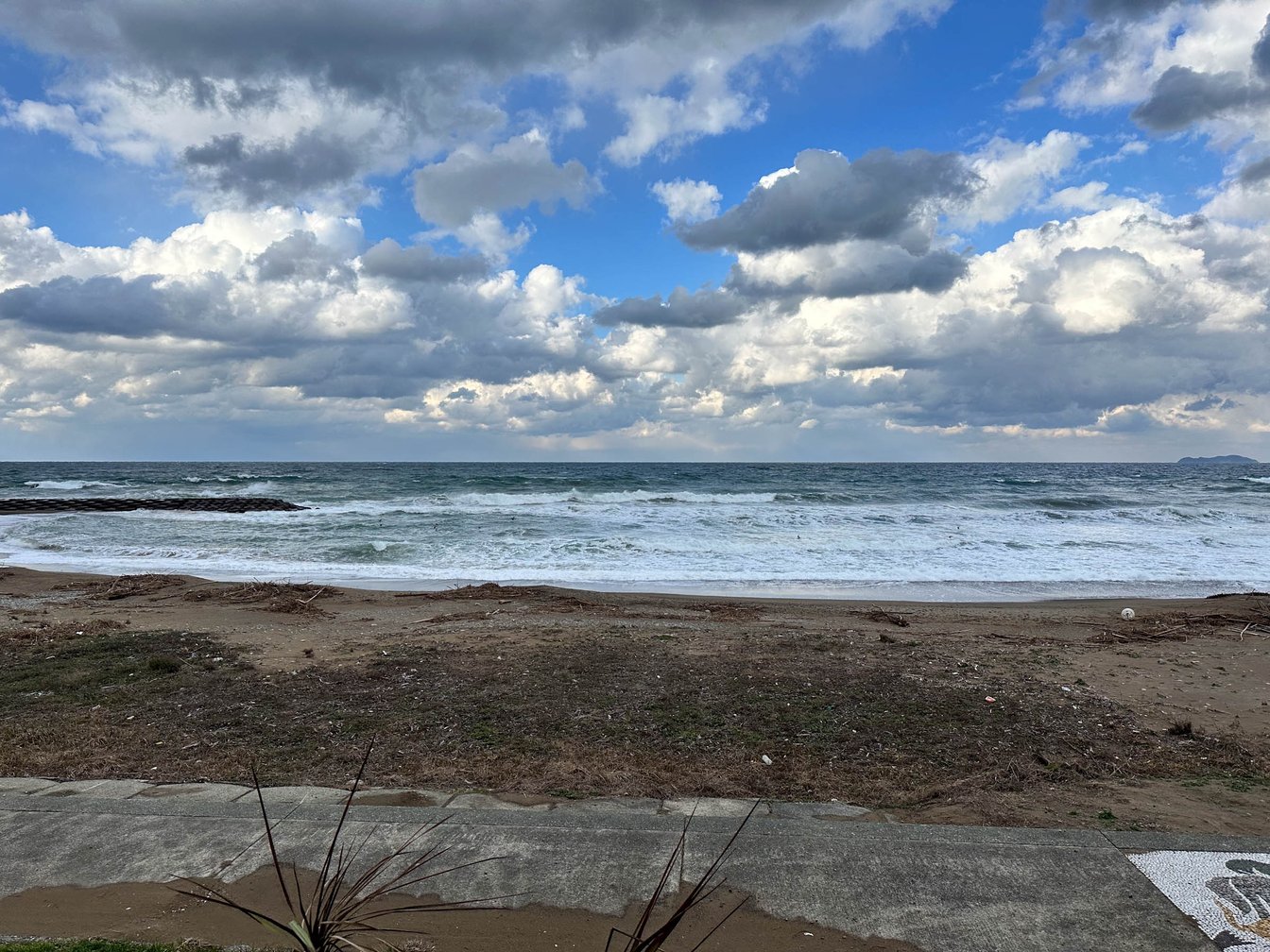 サウナ?プール?外気浴を2セット終えたら、どうしても海が恋しくなってしまい、スタッフの皆さまに見守られながら白波の立つ水辺まで行ってみることに。
