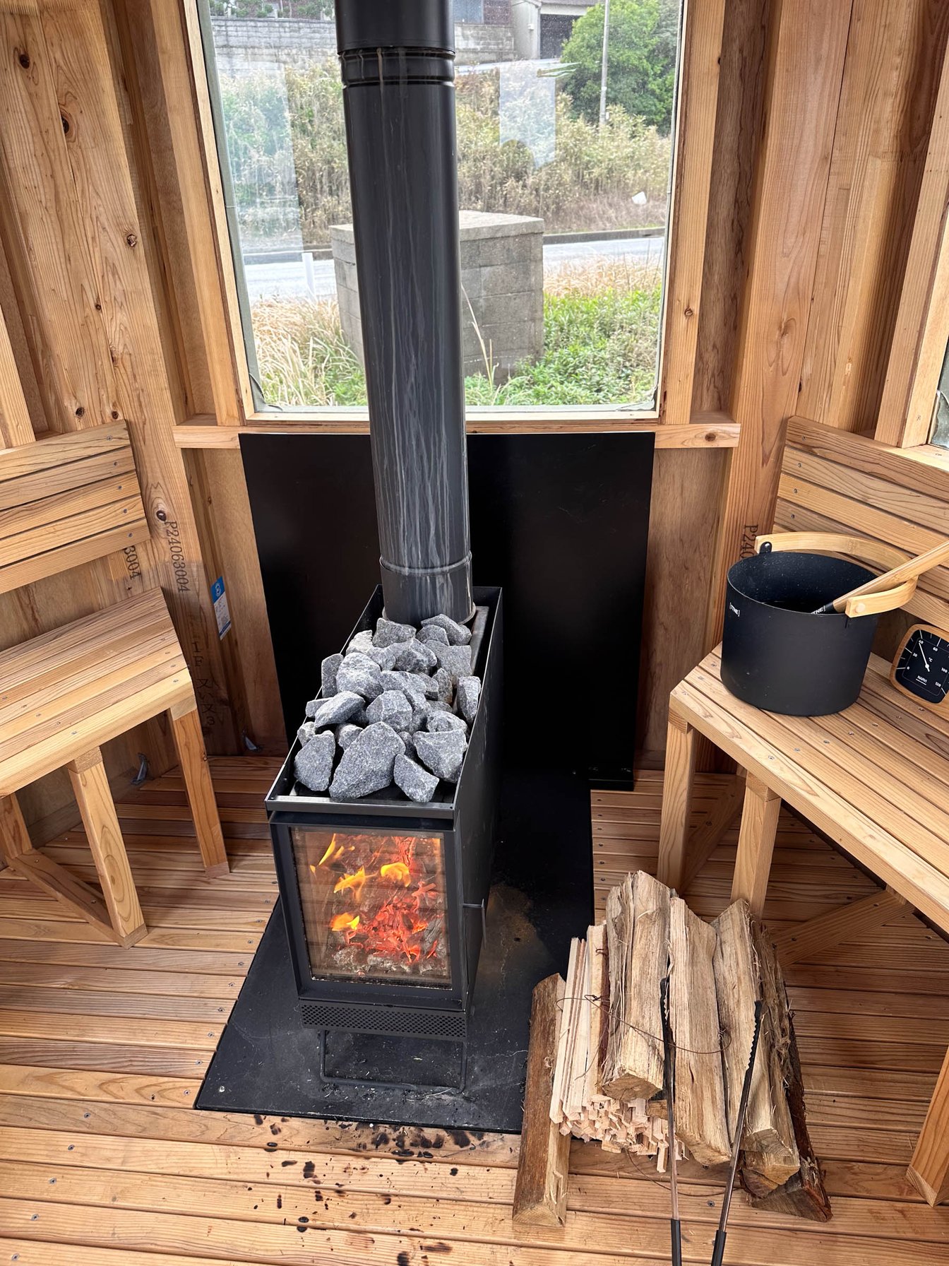 民泊利用時は、ロウリュも火焚きも基本的にはセルフ。シンプルな構造なので慣れれば初心者にも使いやすいサウナストーブでした。