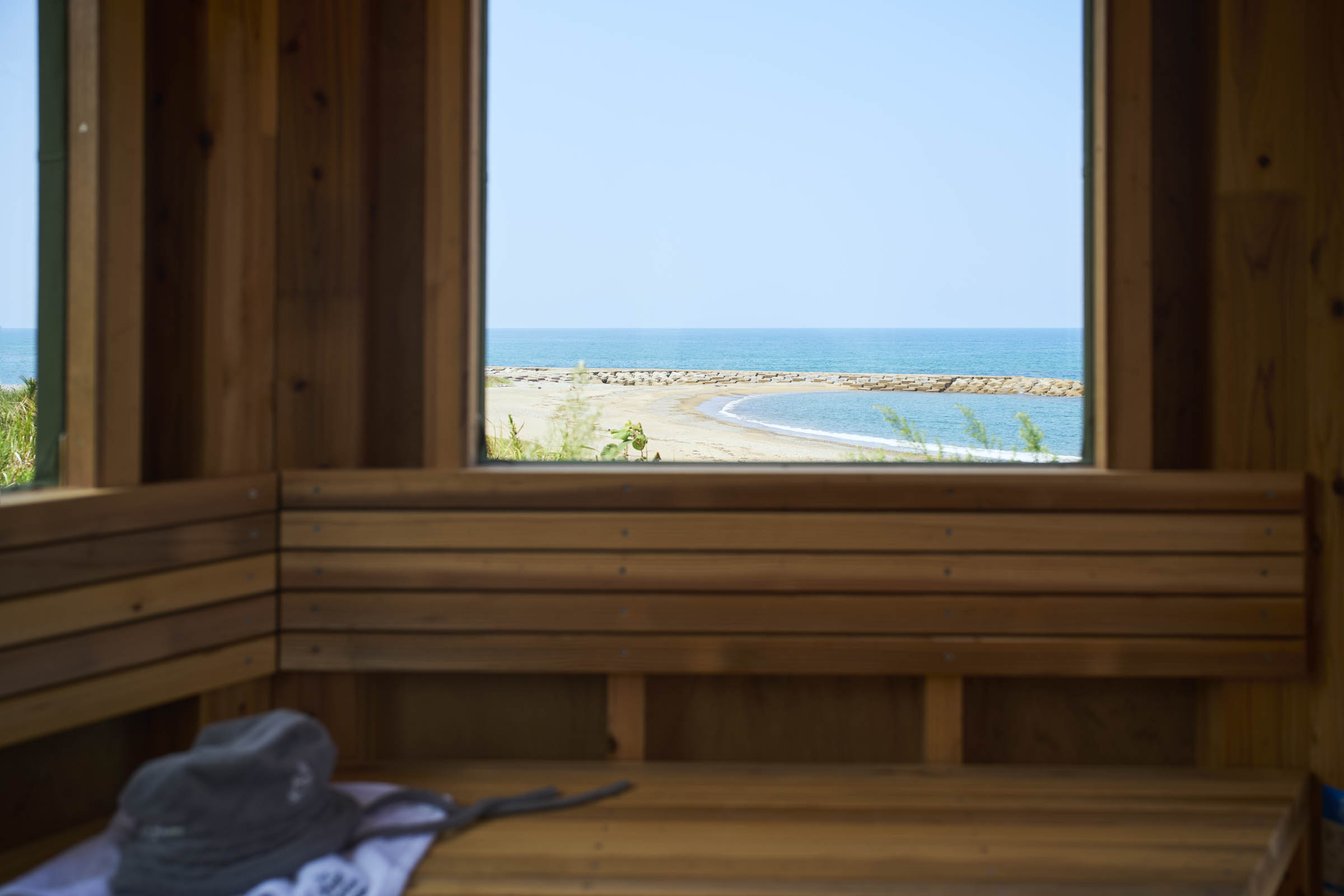 取材日はあいにくの荒天。夏の日本海は凪になり、水風呂代わりに海にダイブすることもできるそう。