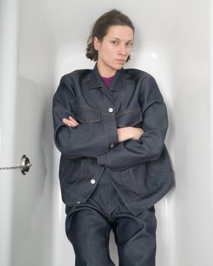 「コトハヨコザワ(kotohayokozawa)」のシグネチャーとも言える、セカンドライン「トゥードゥー コトハヨコザワ(todo kotohayokozawa) 」のプリーツトップスは、羽のようなふんわりとした装飾がフェミニンで可愛らしいアクセントに。ハイネック仕様のおかげで一気に秋冬感が漂います。AWらしいくすみカラーは肌のトーンアップ効果が期待できるのも嬉しいポイント。ニットのカーディガンを羽織って素材のコントラストを楽しむも良し、同ブランドのレイヤードデニムパンツと合わせればフェミニン要素を兼ね備えたモードカジュアルなコーデの完成です。