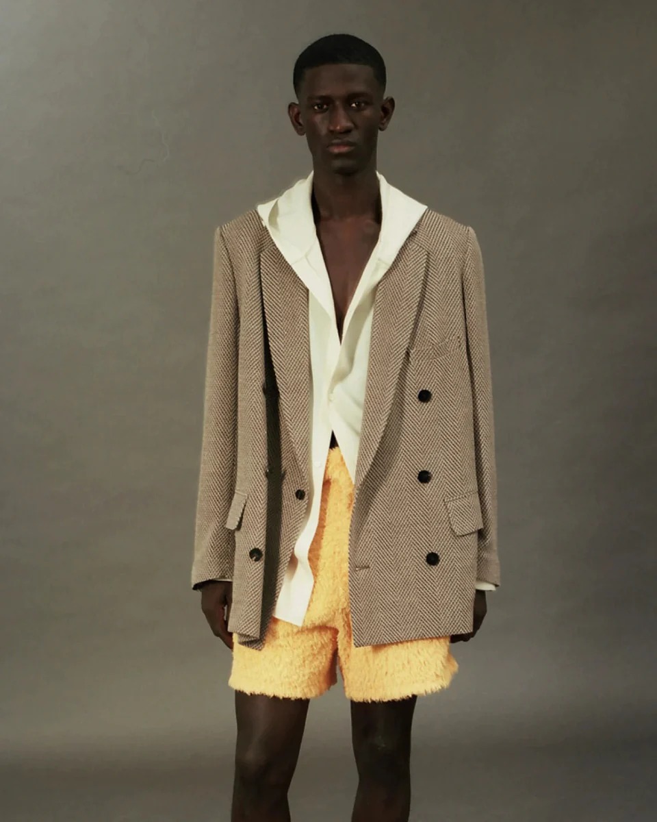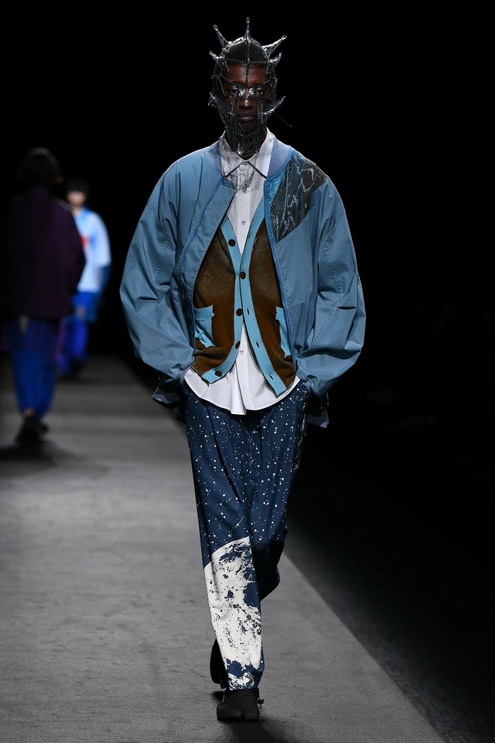 アシンメトリーなデザインが特徴的なブルゾンは「ヨシオクボ(yoshiokubo)」から。MA-1のようなディテールをベースに「すでに着崩したアウター」というユニークなデザインで仕上げられており、スタイリングに抜け感を出してくれます。スポーティーな素材を使用しておりコンパクトなシルエットなので、ワイドパンツと合わせたスポーツ×モードなスタイルに挑戦してみては?