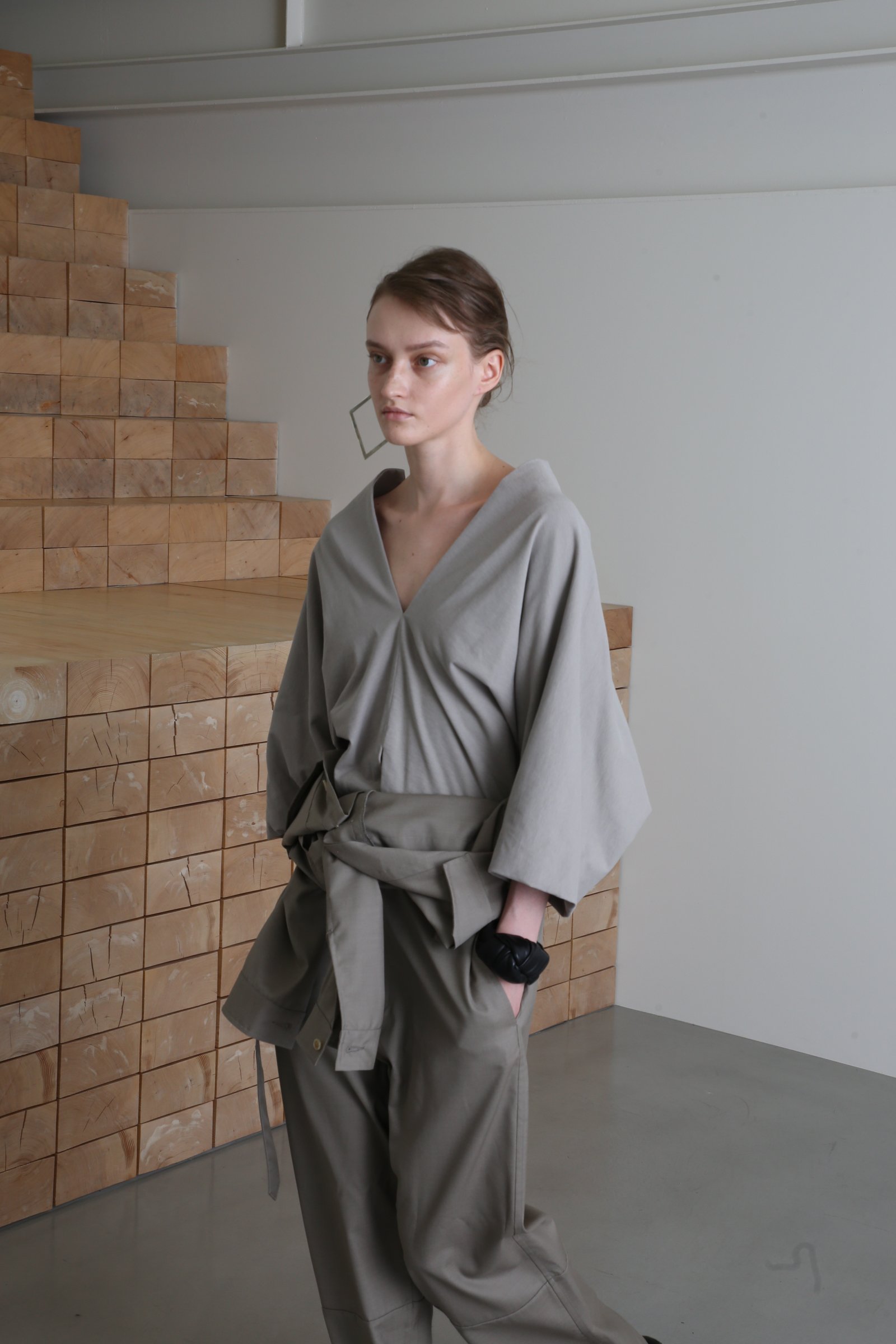「シーオール (SEEALL)」のオールインワンは、袖の取り外しが可能なので、ショートスリーブとロングスリーブの2wayで着られるのがポイント。ウエストに袖を巻き付けてパンツのようにしたり、夏は半袖にして1枚で着用したりと幅が広がるアイテムです。落ち着いたカラーリングなので秋口でも着回せるのが嬉しいポイント。ウールとシルクを用いた贅沢な素材が使われており、ワークテイストになりすぎず品よく着られます。