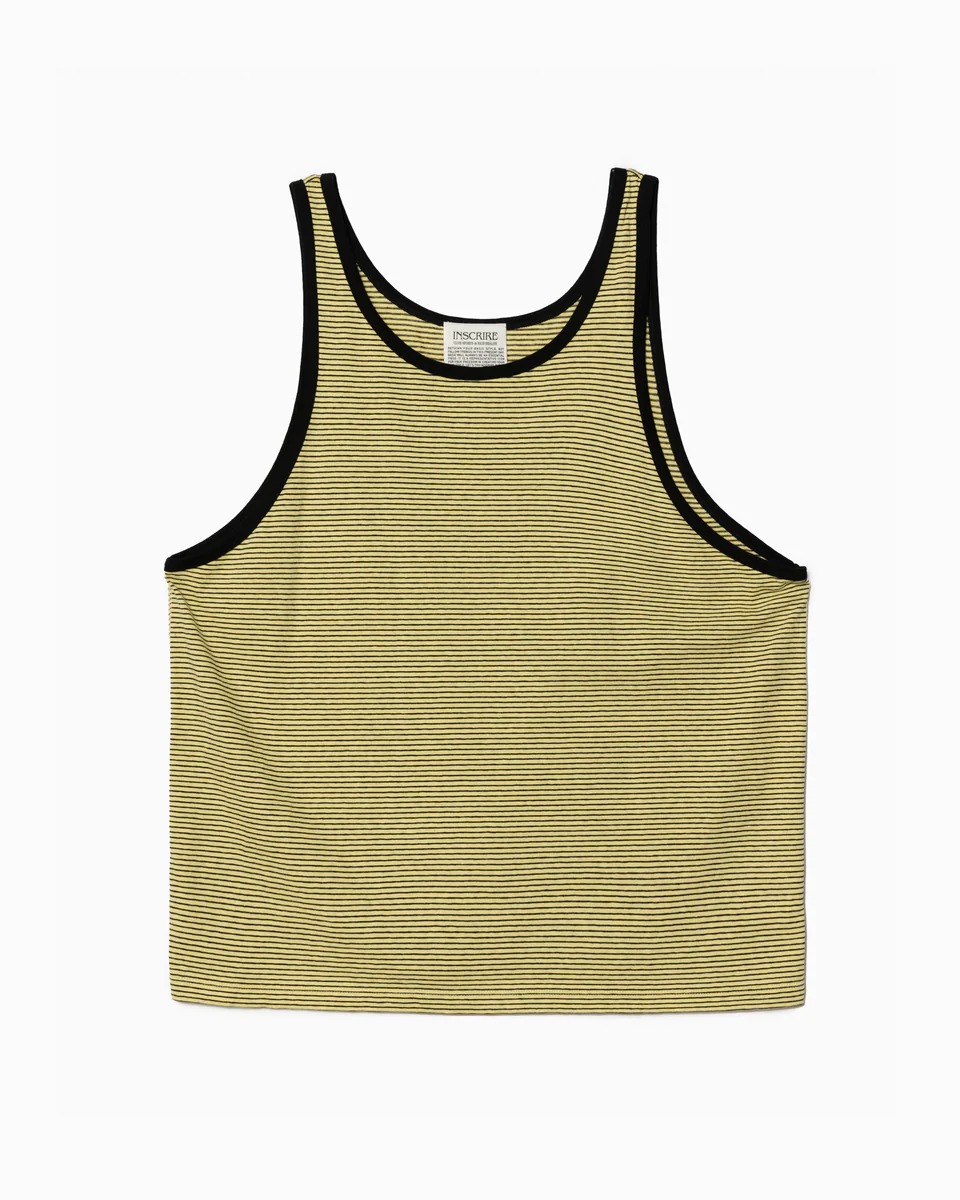 ヴィンテージライクなタンクトップは、パイピングを加えることでメリハリの効いたデザインに。首元や身幅がざっくりとしているので、ヘルシーな印象になります。