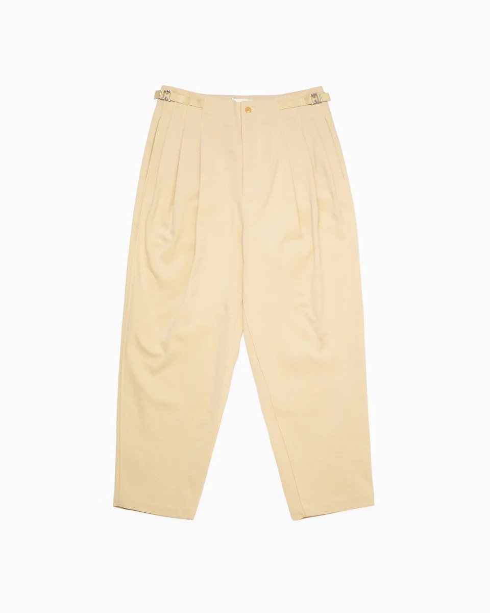 スモーキーイエローが品のある佇まいを演出してくれるテーパードパンツ。どんな腰の位置でも綺麗に穿けるという「イレニサ(IRENISA)」ならではのパターン設計は、思わずそのウンチクを誰かに話したくなってしまいそう。セットアップで着られるジャケットも販売中!