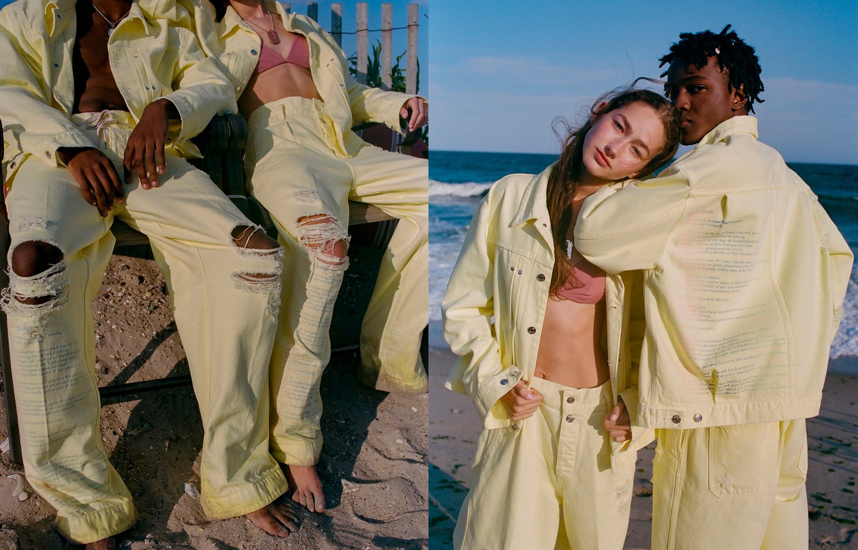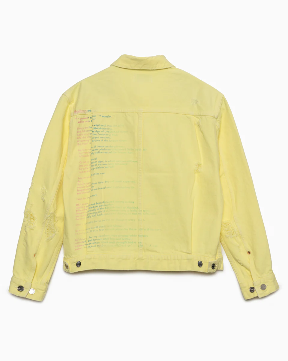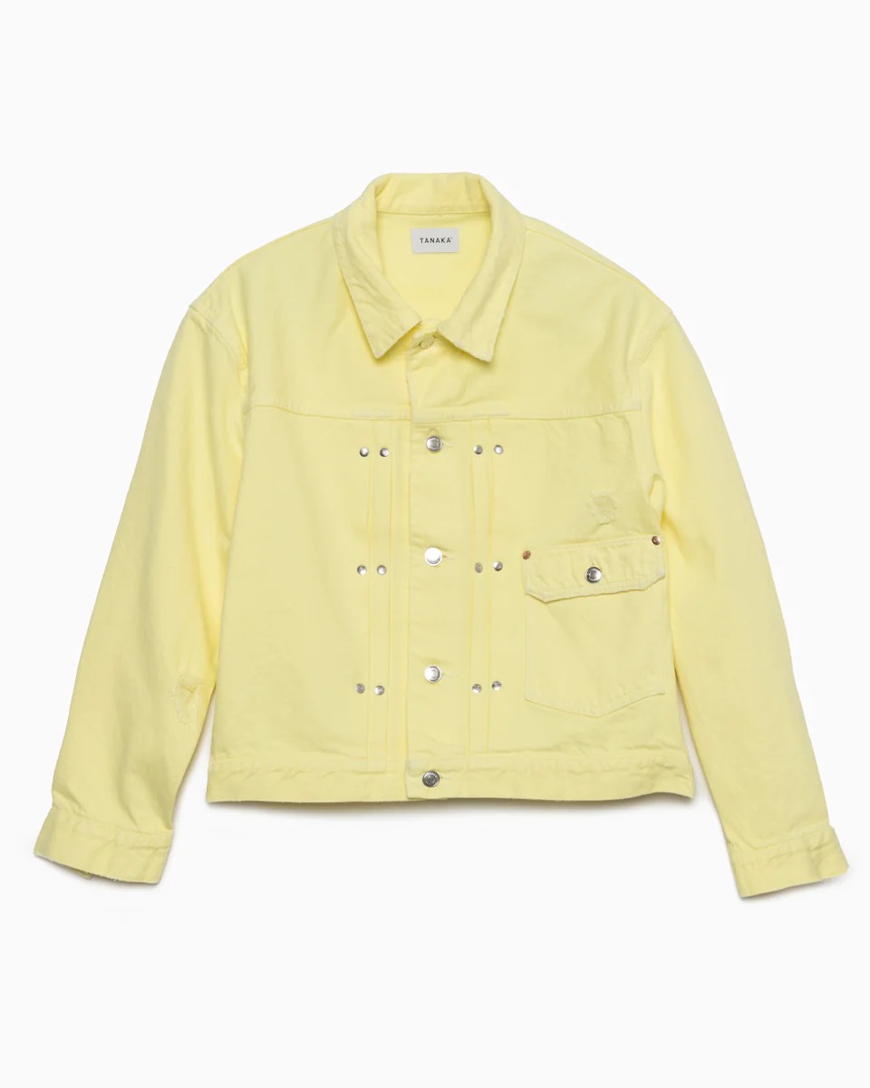 カイハラ社製プレミアムセルビッジデニムを使用したTANAKAのシグネチャーデニムジャケット。爽やかなカラーリングとカラフルなテキストがプリントされたバックスタイルは、スタイリングのアクセントになること間違いなし。